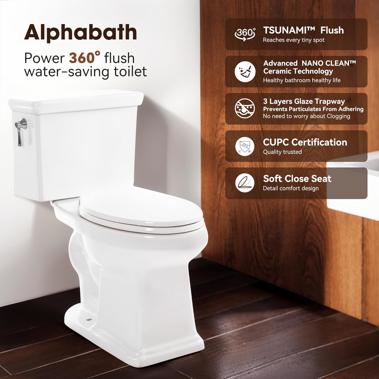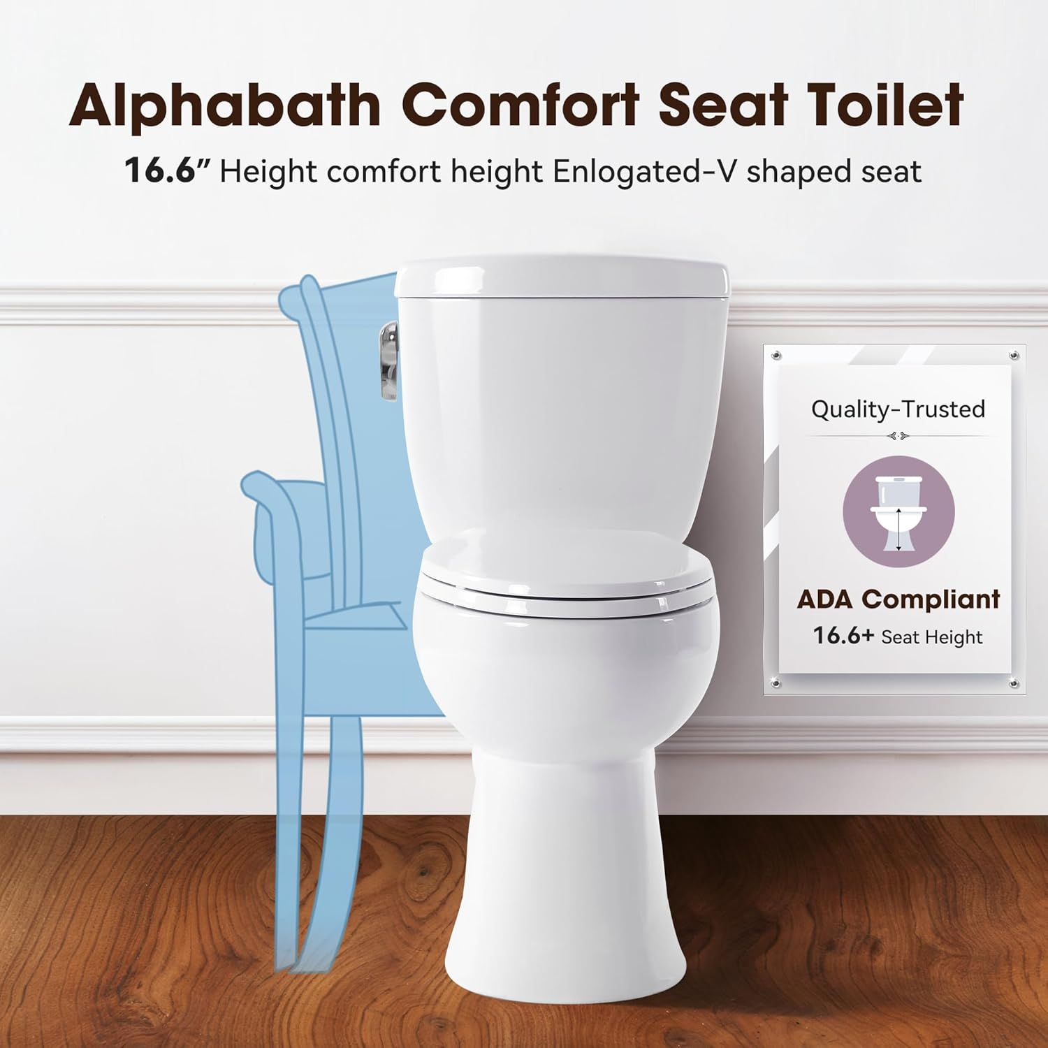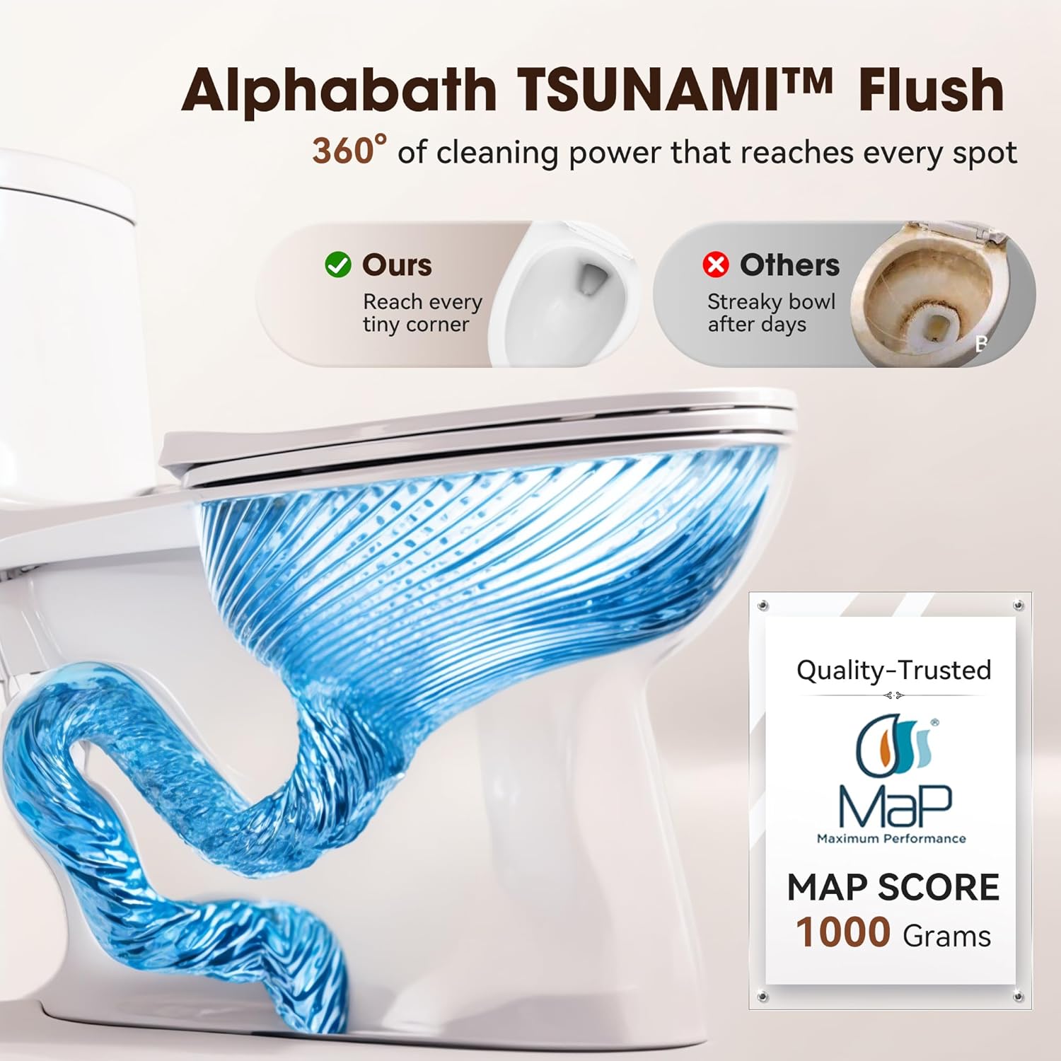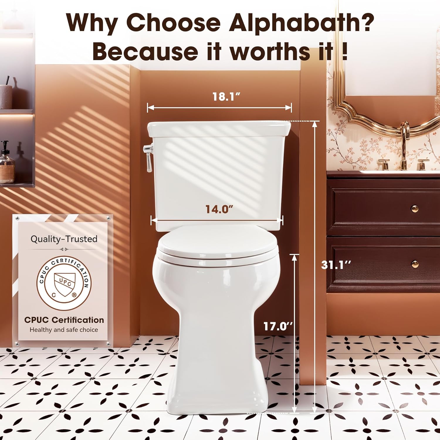 - 【Quality Assurance】: Our Alphabath bathroom toilet is certified by CUPC, DOE, EPA WaterSense, ADA Height, Green, and MAP, ensuring both safety and consistent quality. You can choose with confidence, knowing you are selecting a reliable product.
