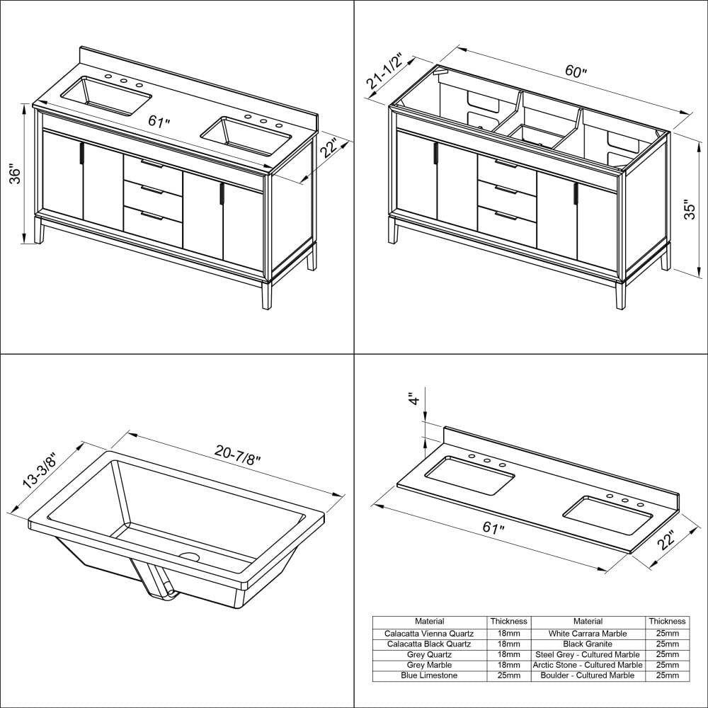 60" Grey Double Vanity