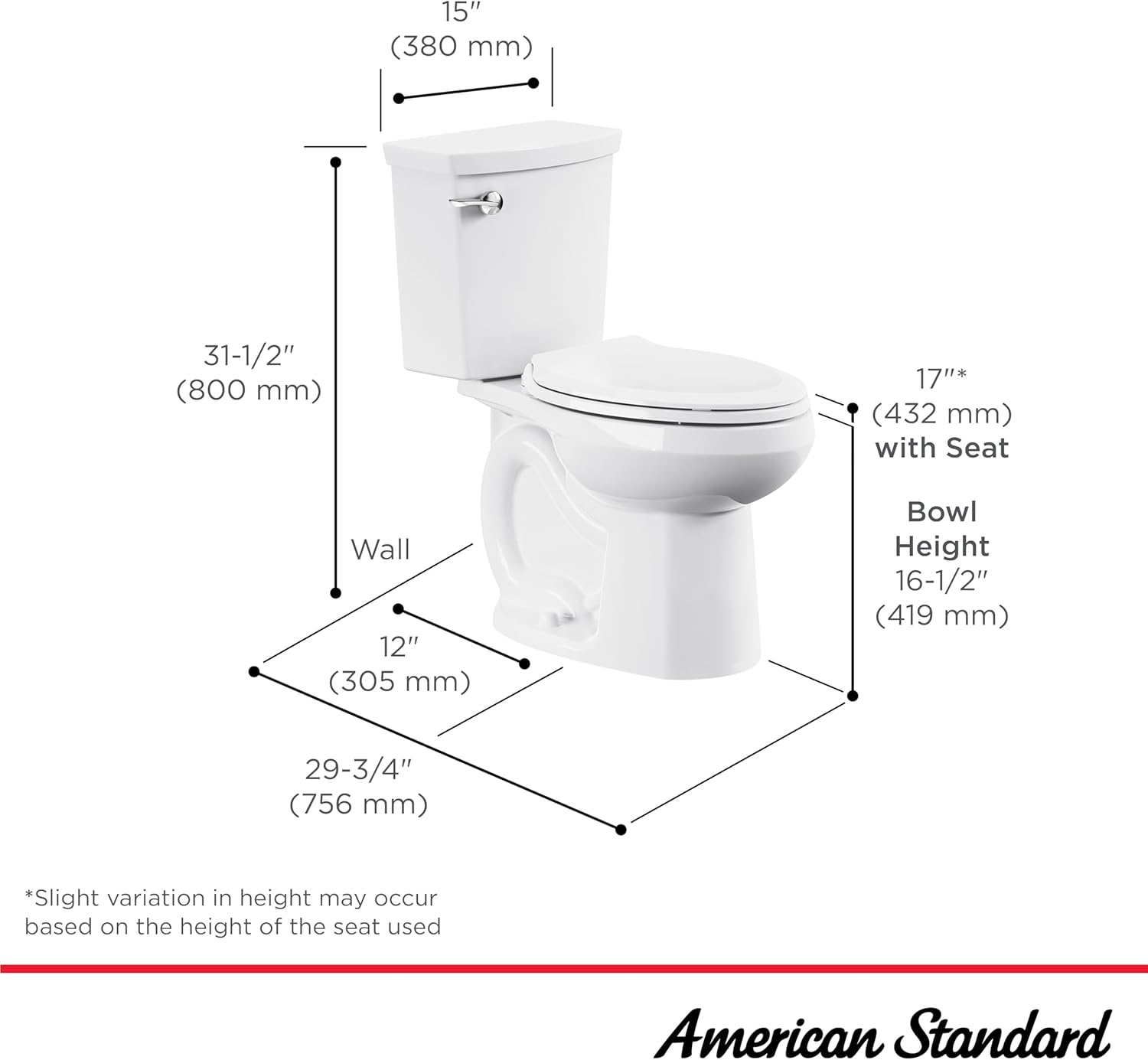 The H2Optimum Two-Piece Chair Height Elongated Toilet from American Standard is the highest water-saving gravity flush toilet available. The H2Optimum delivers impressive flushing performance using 1.1 gallons per flush/4.2Lpf. Designed for comfortable use and ease of accessibility, the chair-height bowl is 16 ½-in. high with an elongated shape that offers a more spacious interior bowl surface.