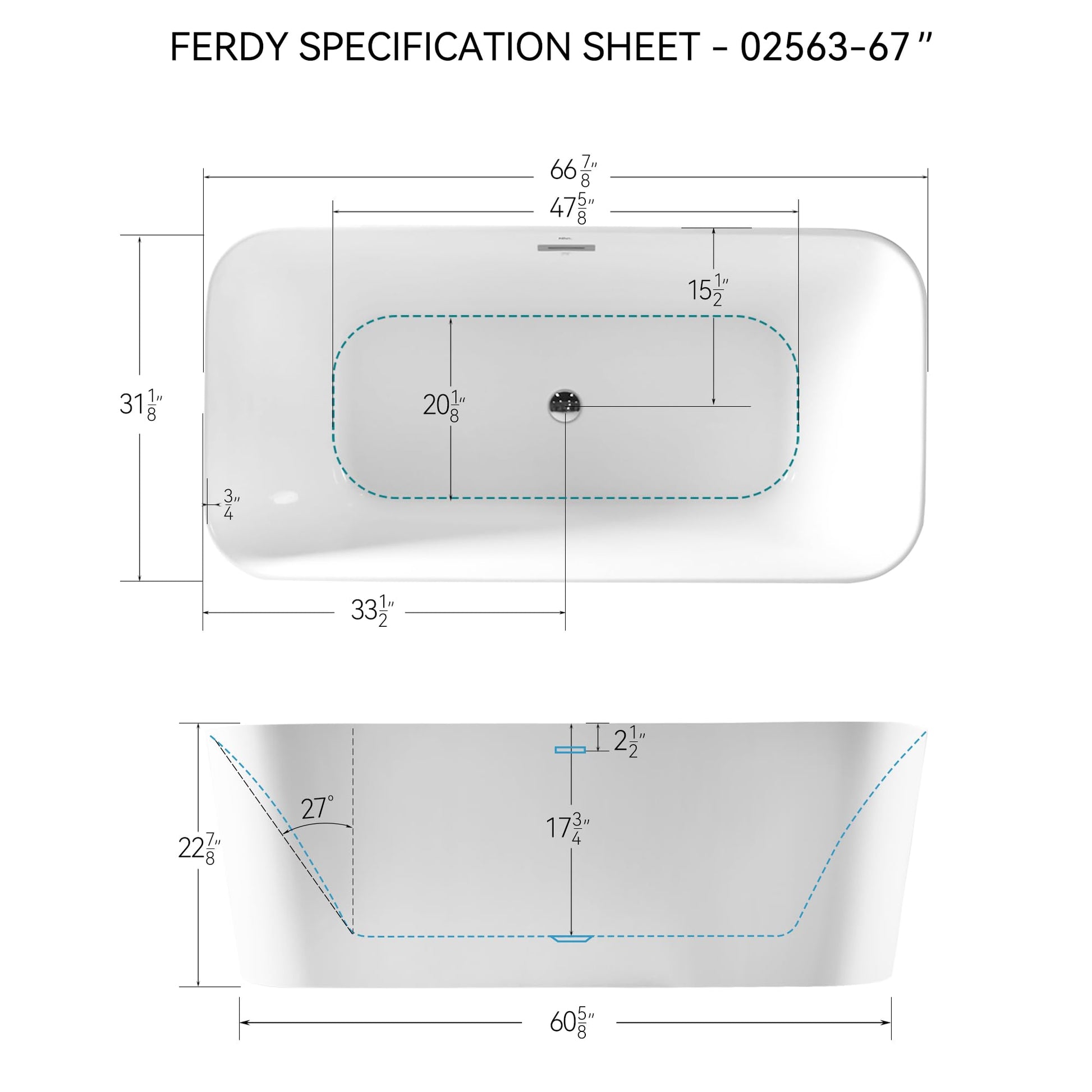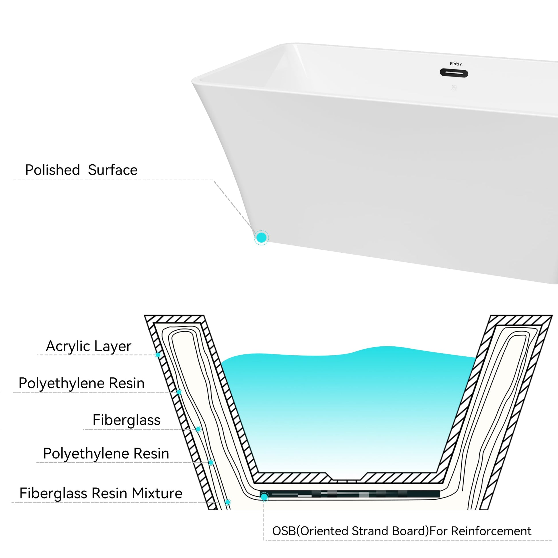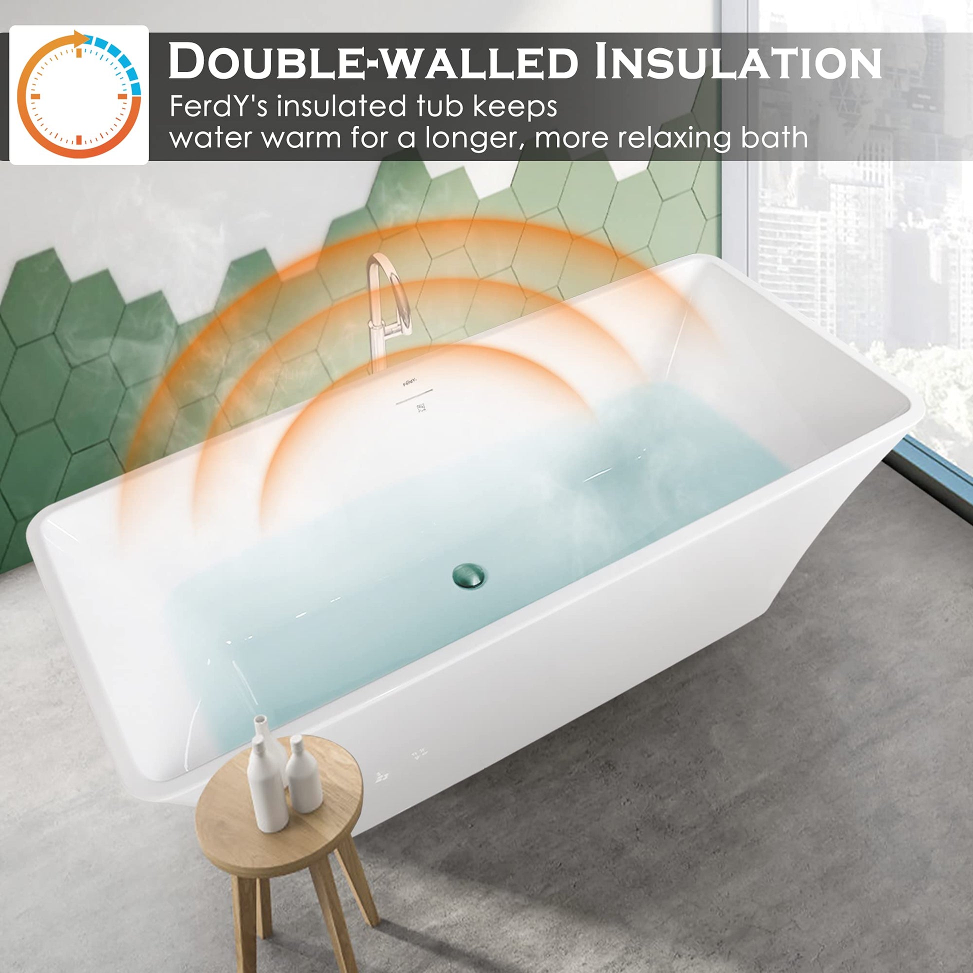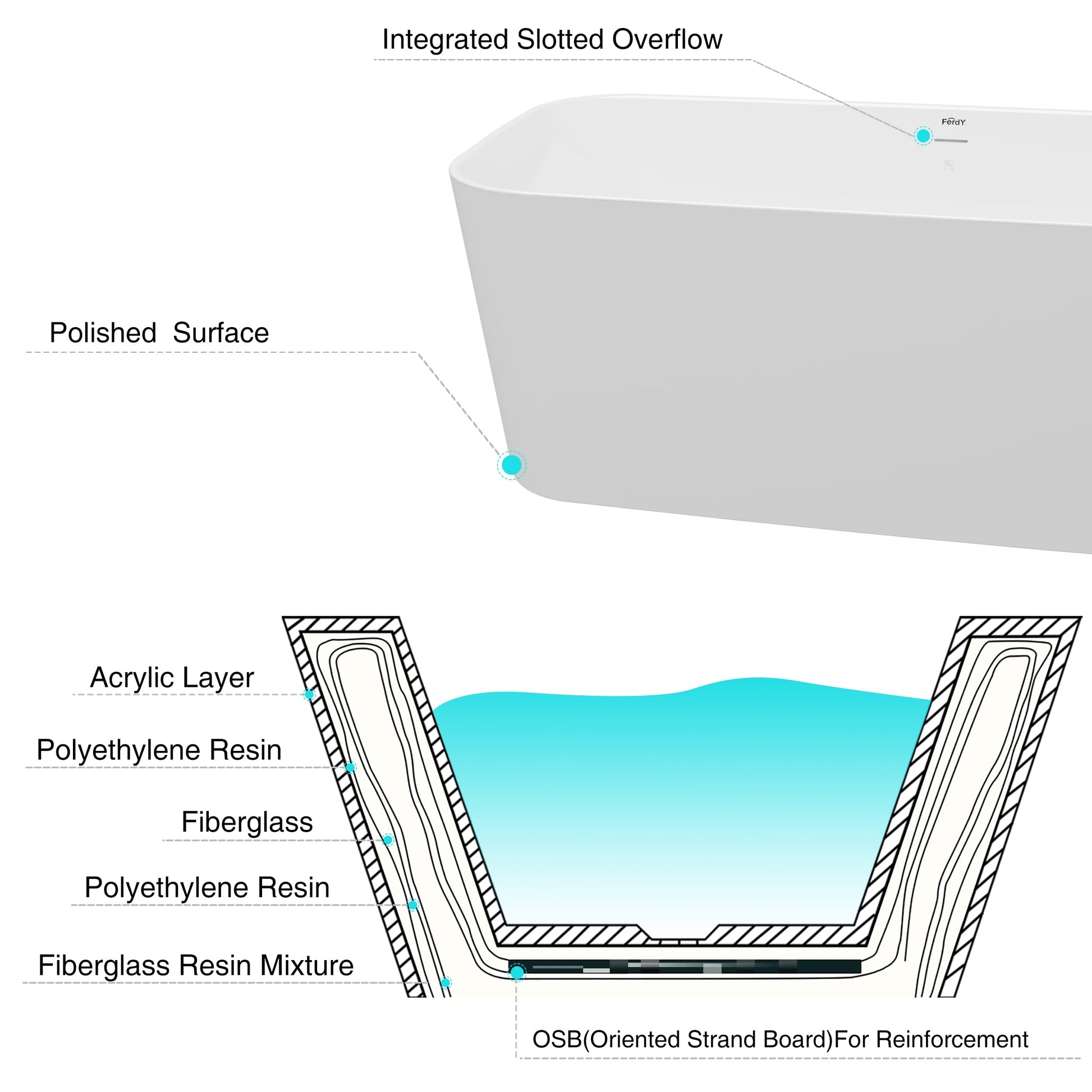 - š TOP CLASS MATERIAL: 100% glossy white acrylic reinforced with fiberglass for long-lasting durability. Environmentally friendly material, non-toxic, non-cracking, high gloss, and durable finish. Easy to clean, and resistant to a wide range of household chemicals and cosmetic products. All our FerdY products are cUPC certified as mandated by the U.S. Federal Government that ensures protection to your health and safety.