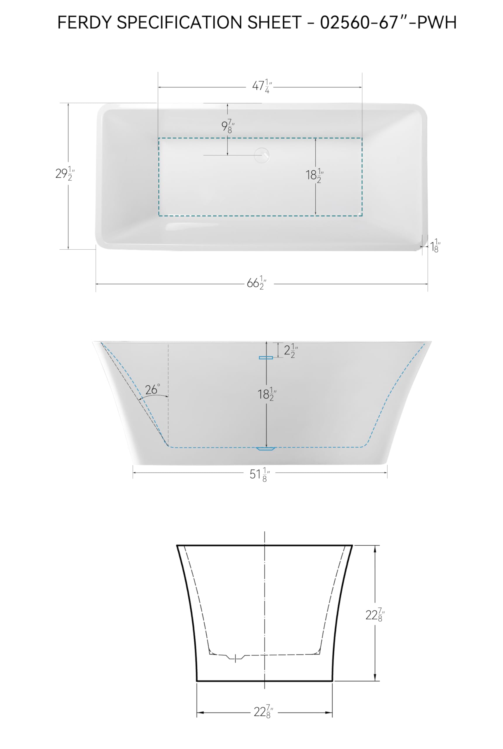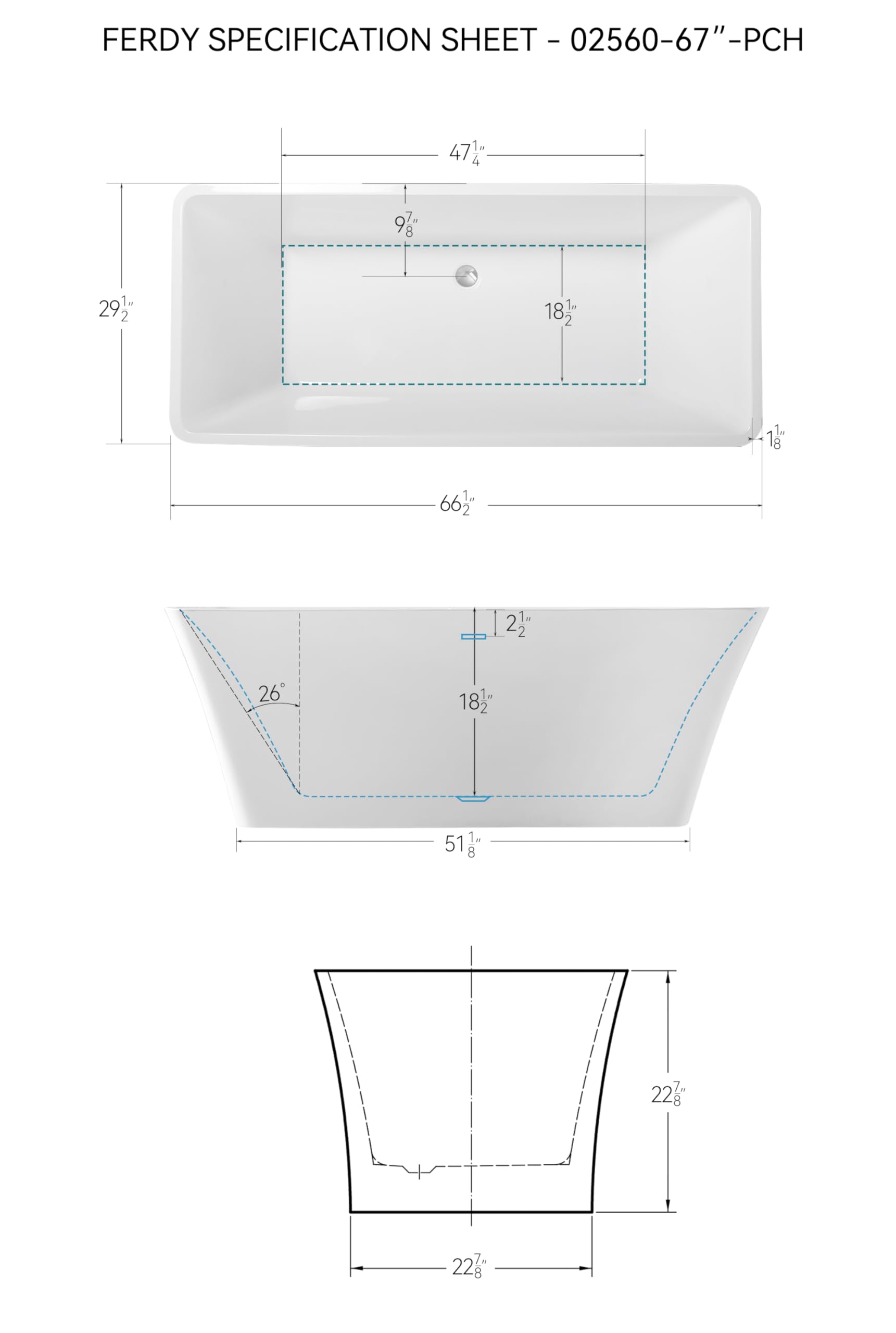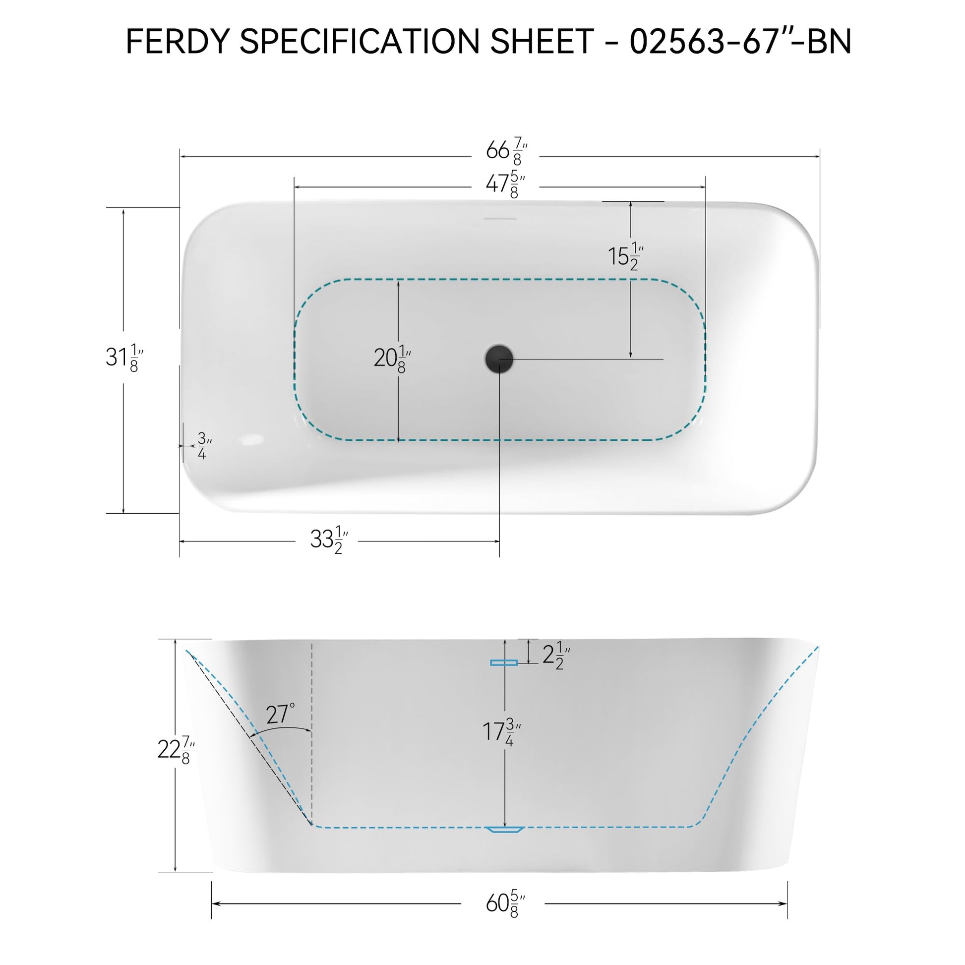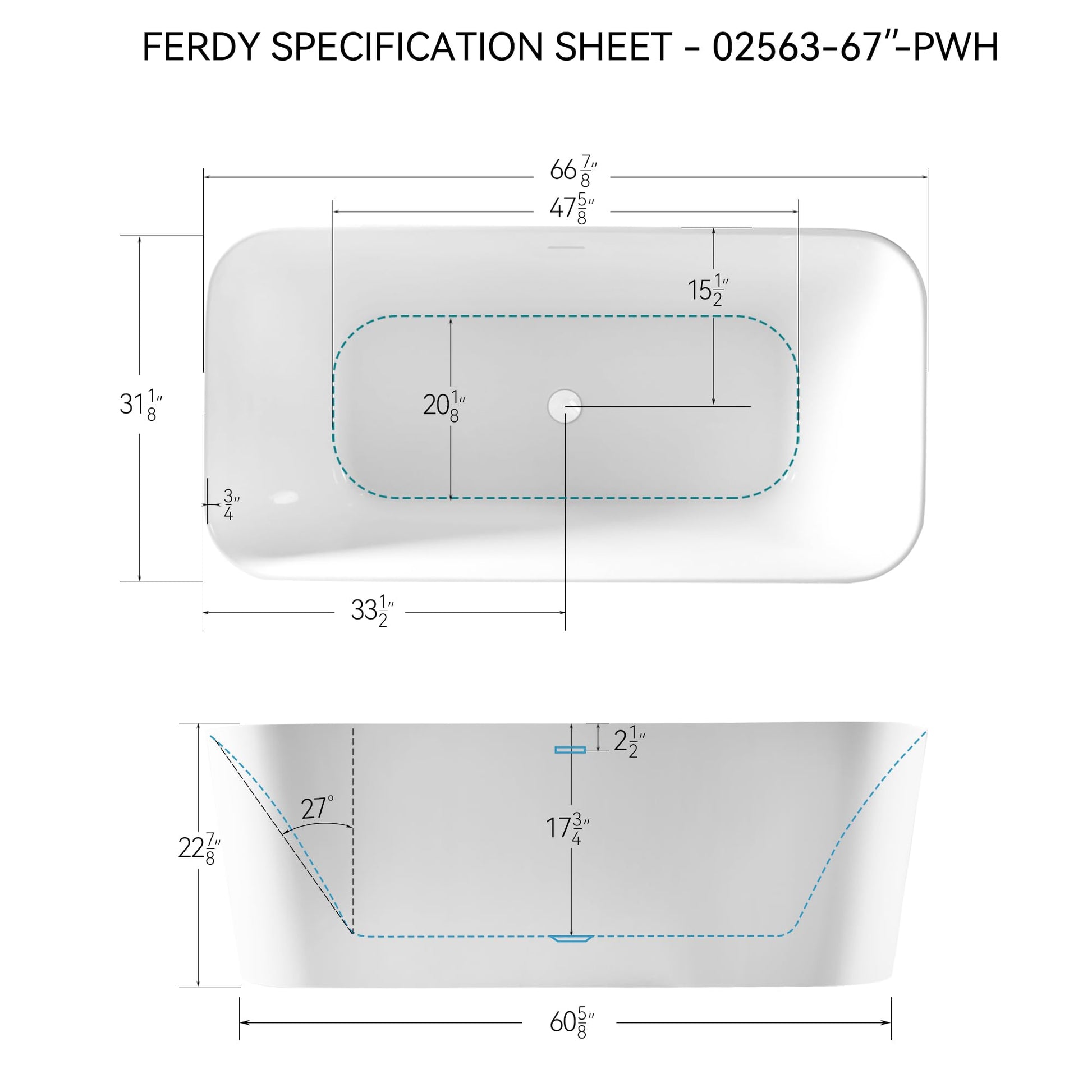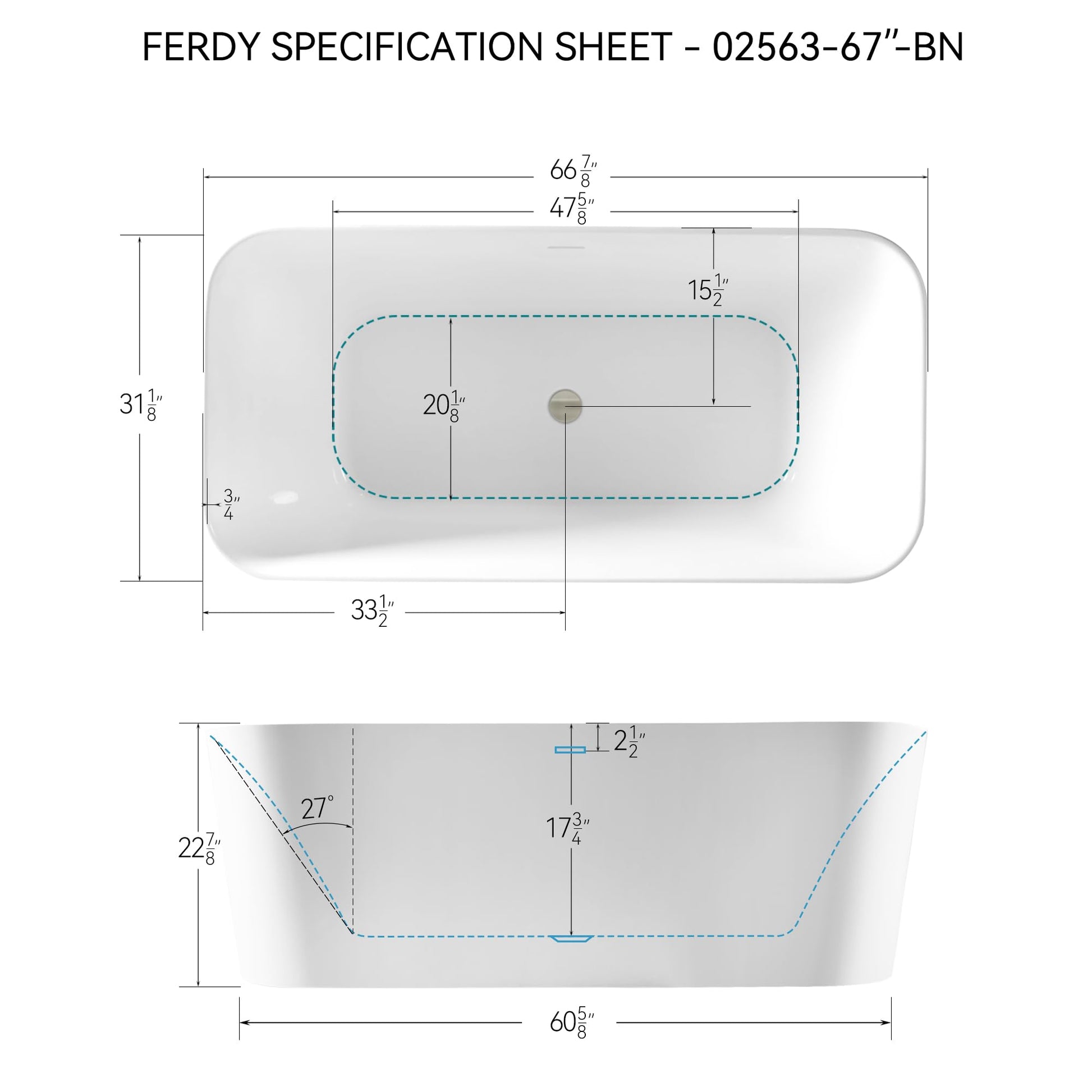 - š TOP CLASS MATERIAL: 100% glossy white acrylic reinforced with fiberglass for long-lasting durability. Environmentally friendly material, non-toxic, non-cracking, high gloss, and durable finish. Easy to clean, and resistant to a wide range of household chemicals and cosmetic products. All our FerdY products are cUPC certified as mandated by the U.S. Federal Government that ensures protection to your health and safety.