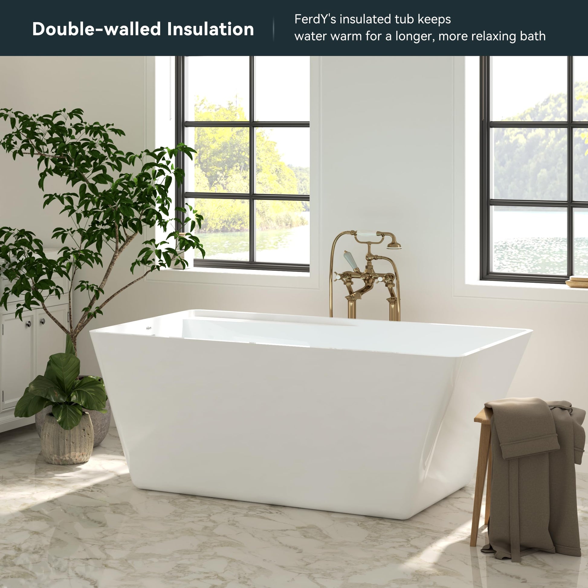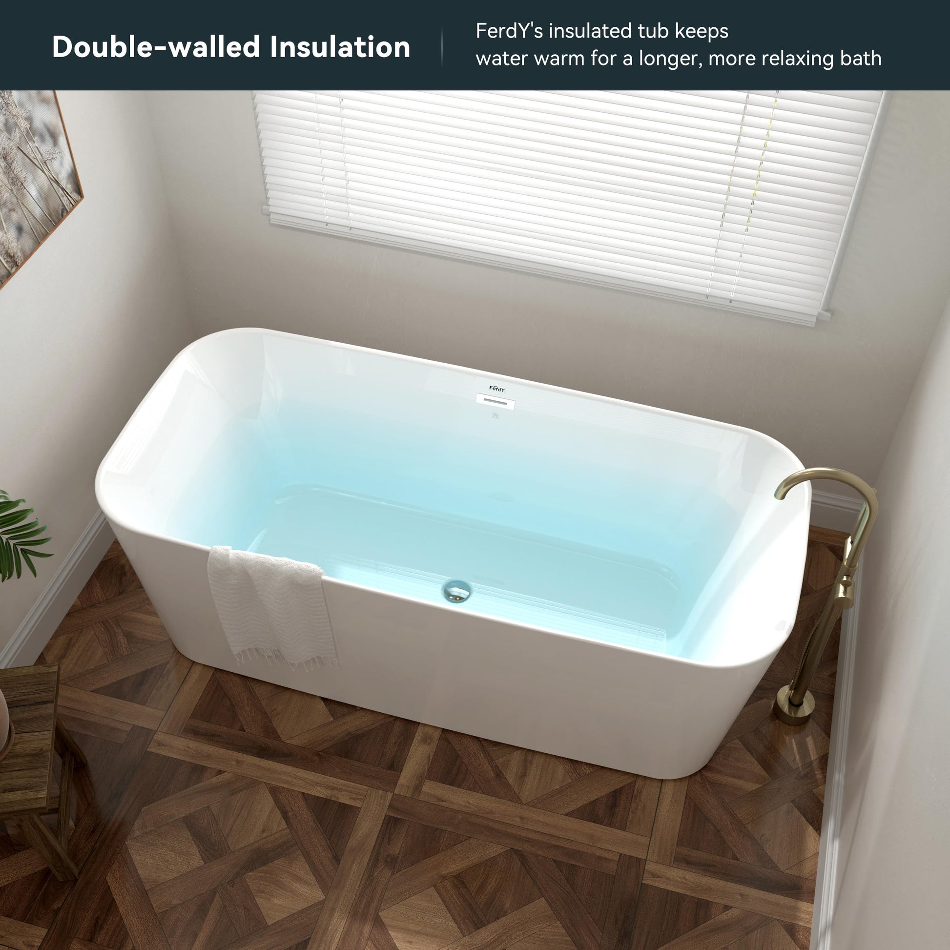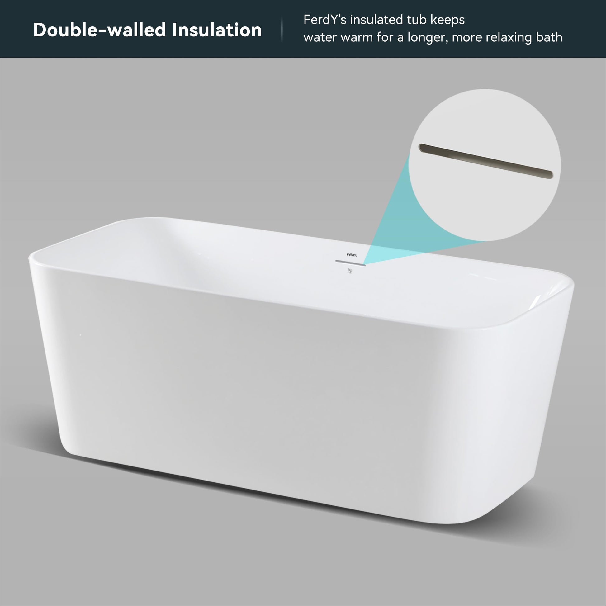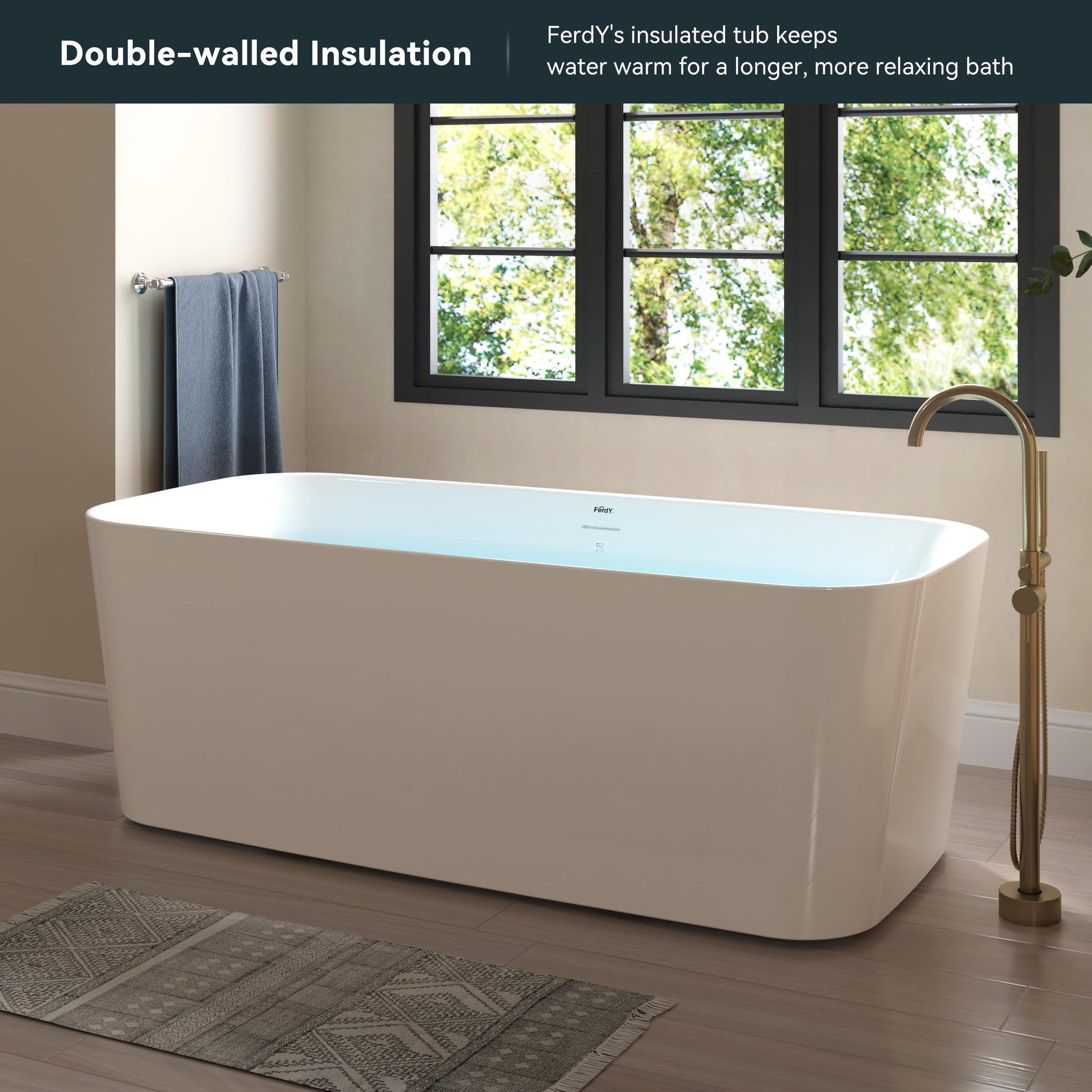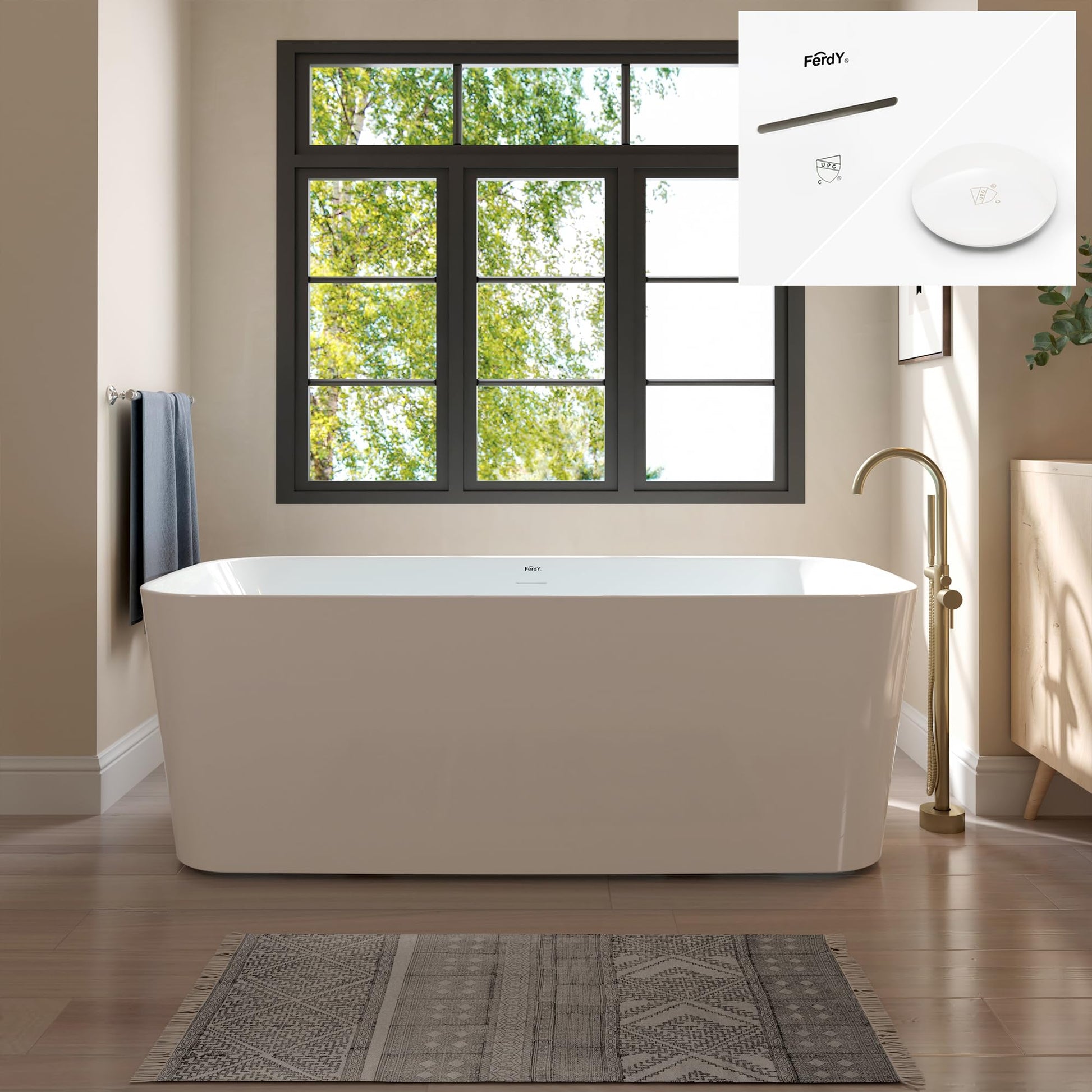 - š CLASSIC DESIGN: Clean, elegant, and contained, FerdY Maui expresses contemporary beauty and simplicity. This freestanding bathtub lets you indulge in a deep and immersive soak as you relax against the sloped lumbar support. The cast resin material allows for dynamic curvatures and for crisp, hand-finished details that are rich with character.