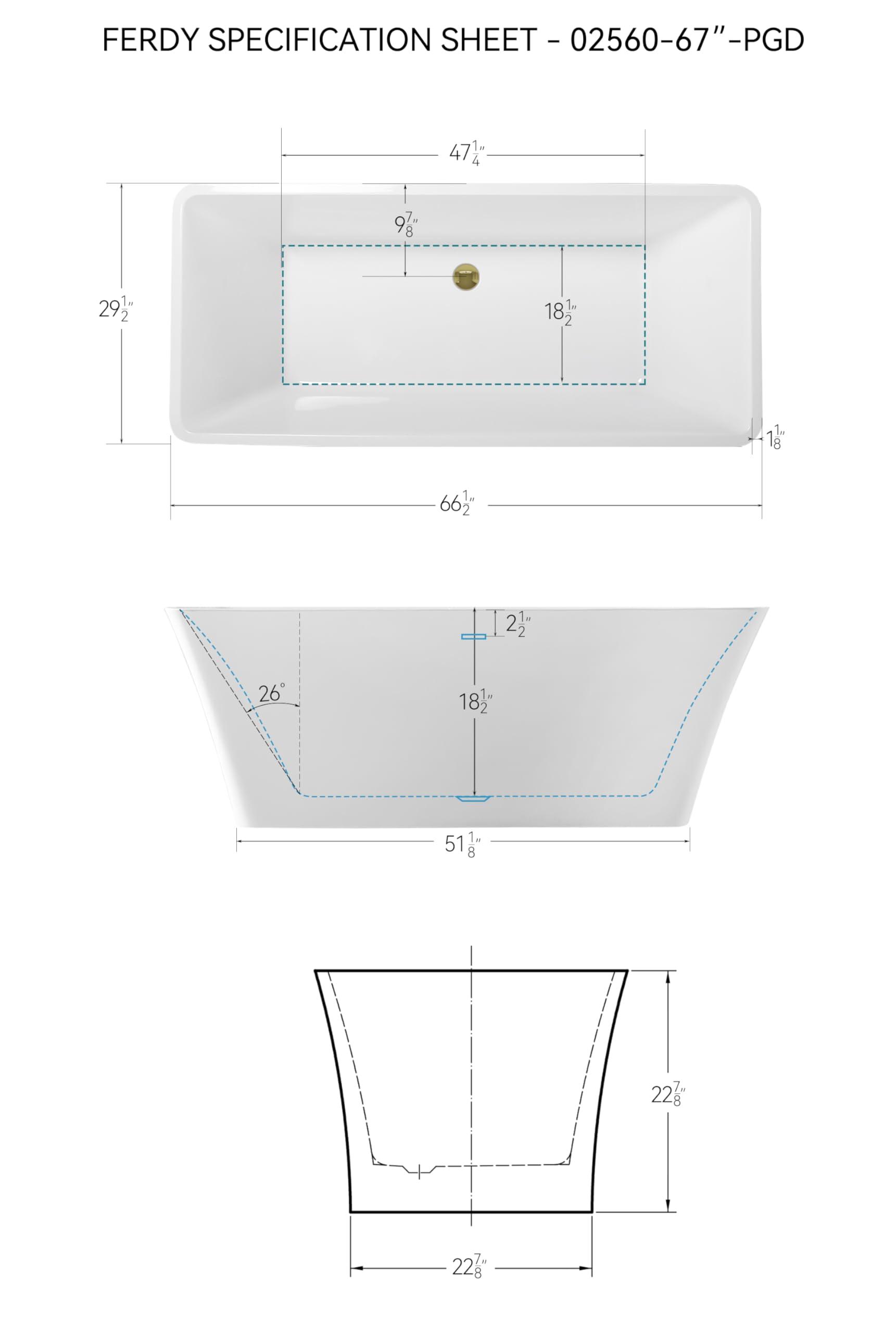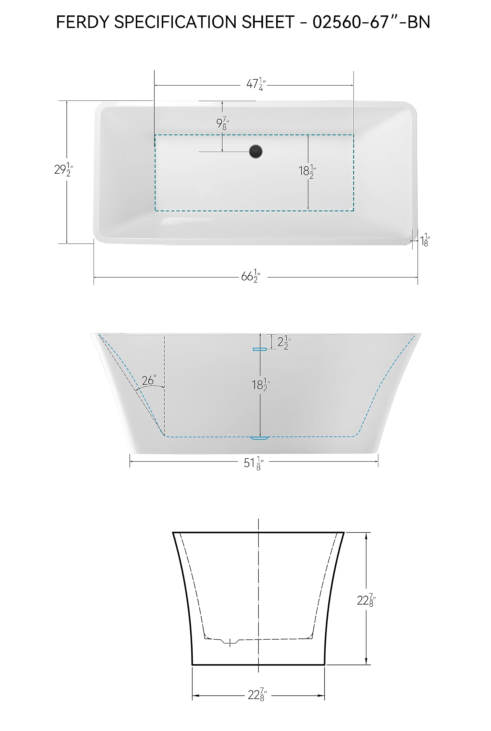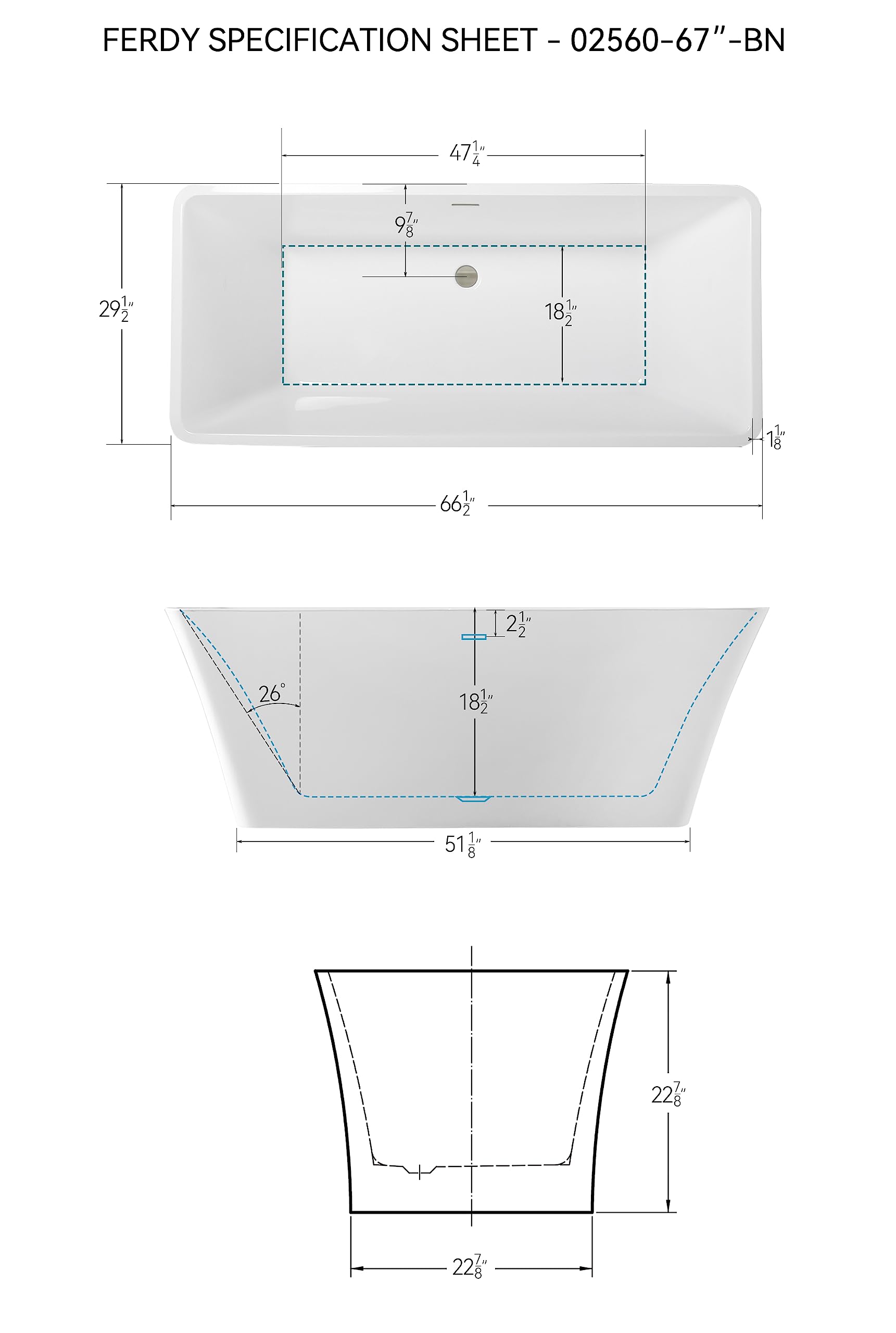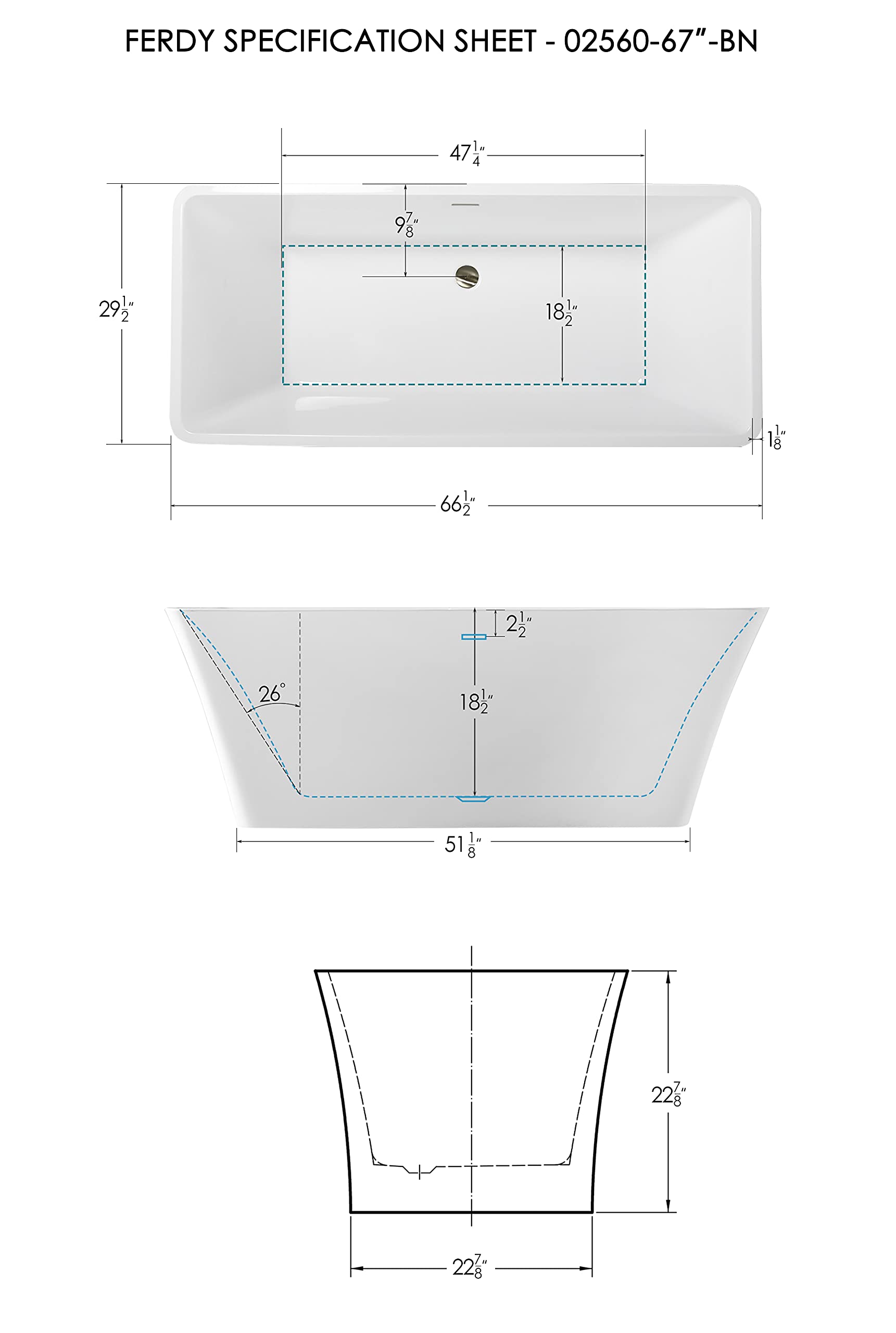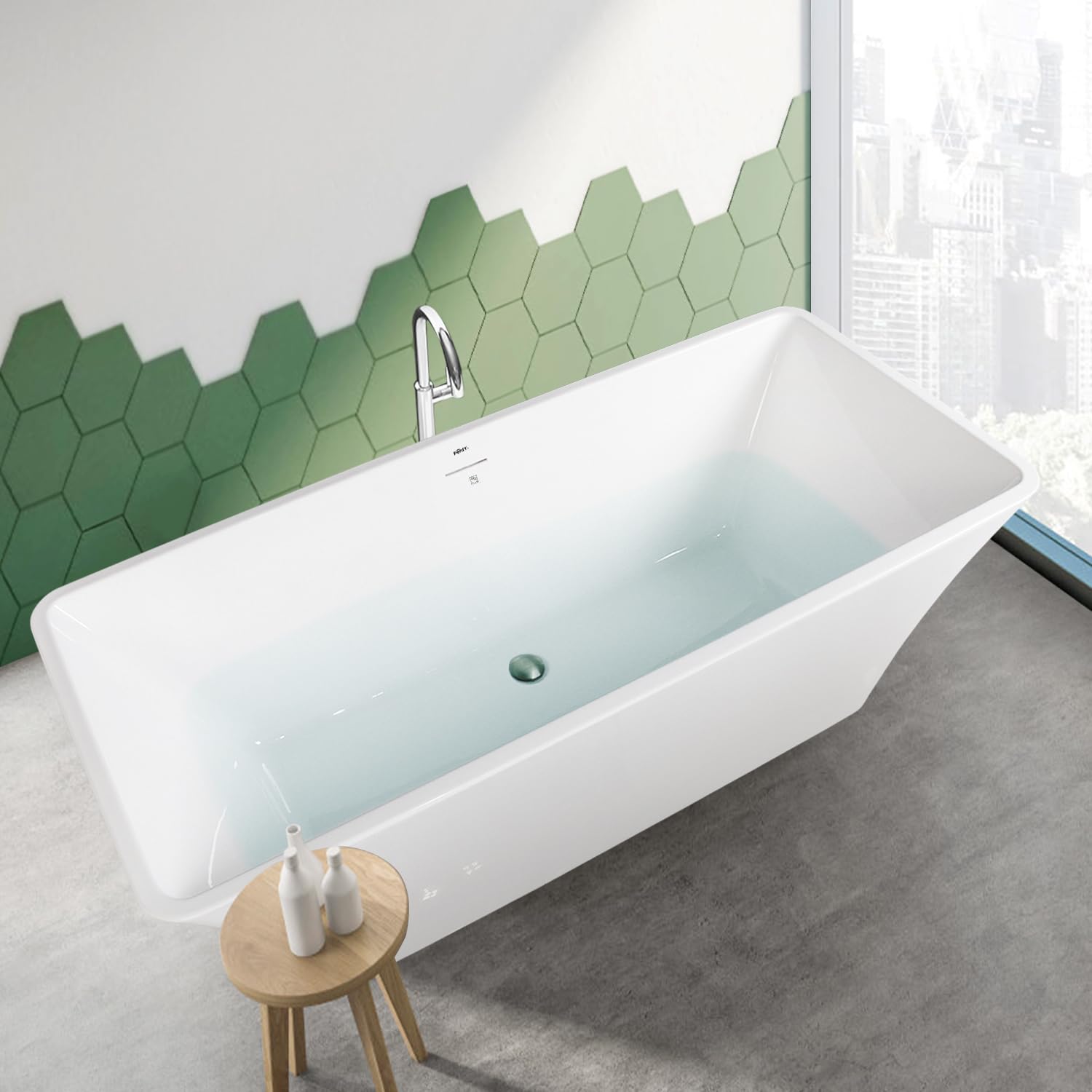 - š A PERFECT BATHING EXPERIENCE: With 67-inch length and 15-inch soaking depth the sloped lumbar support offers extra comfort while bathing. Our Integrated slotted overflow provides a clean and minimalist design that allows for a deep soak.