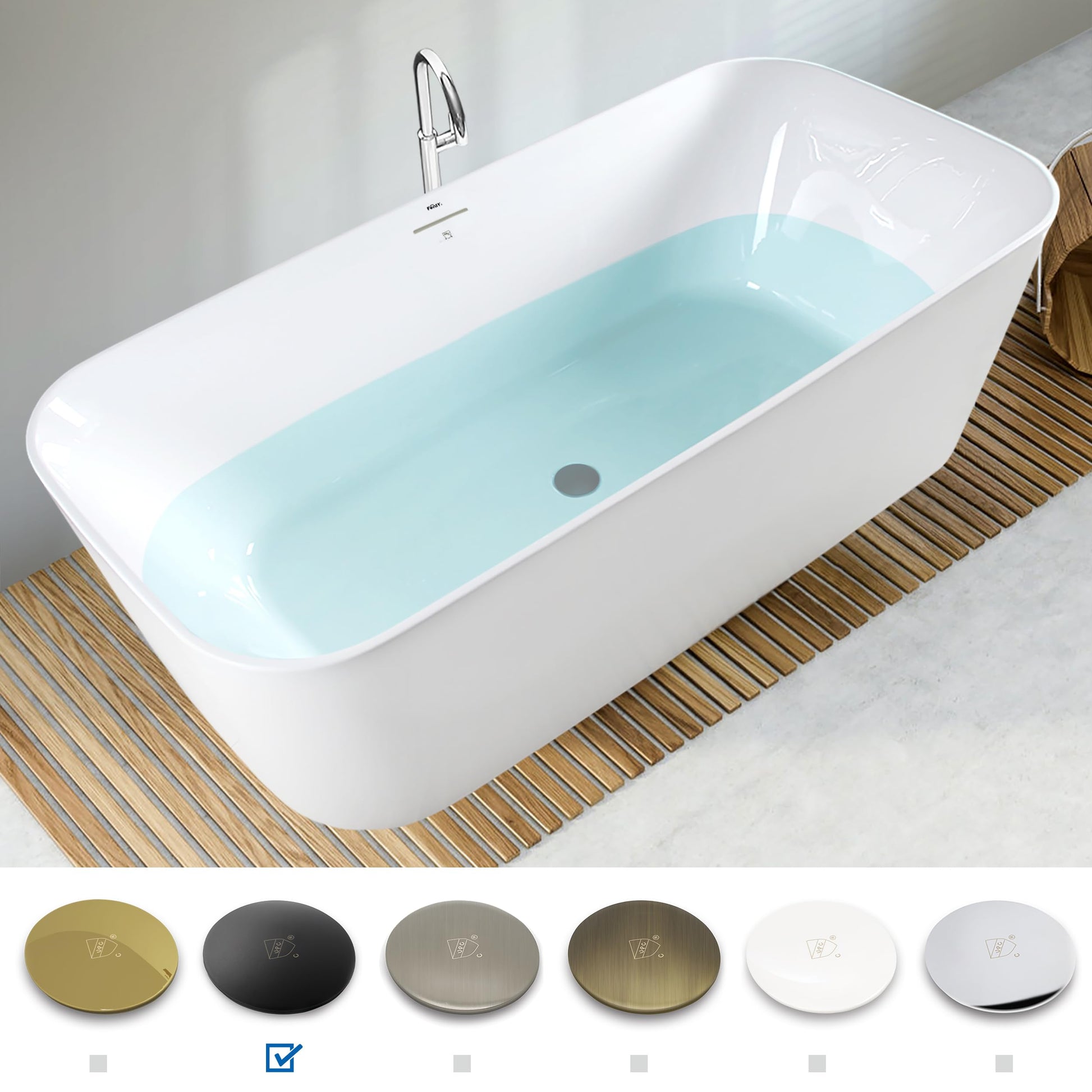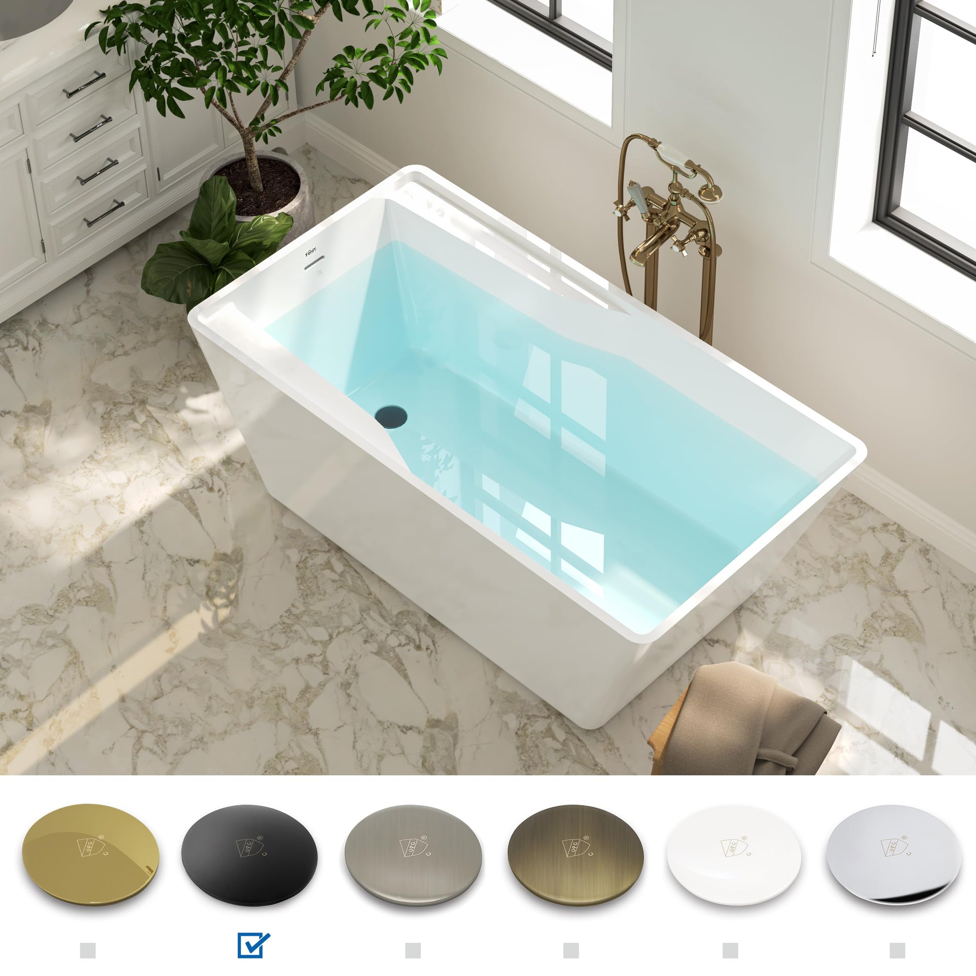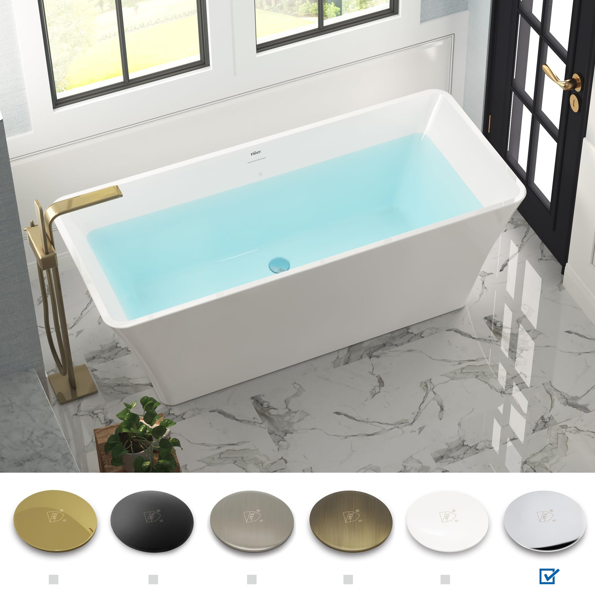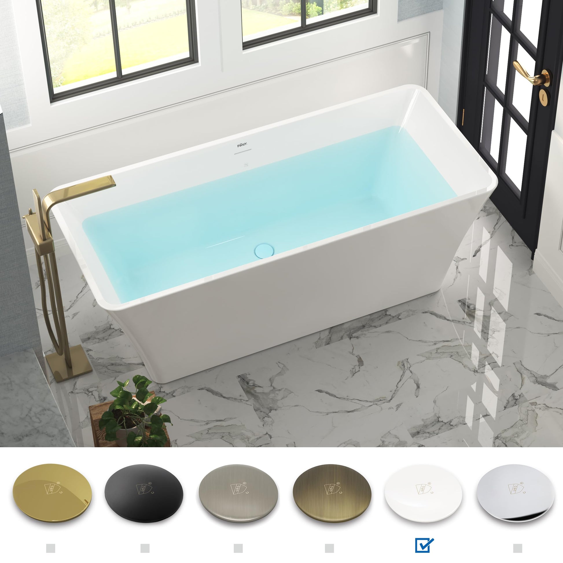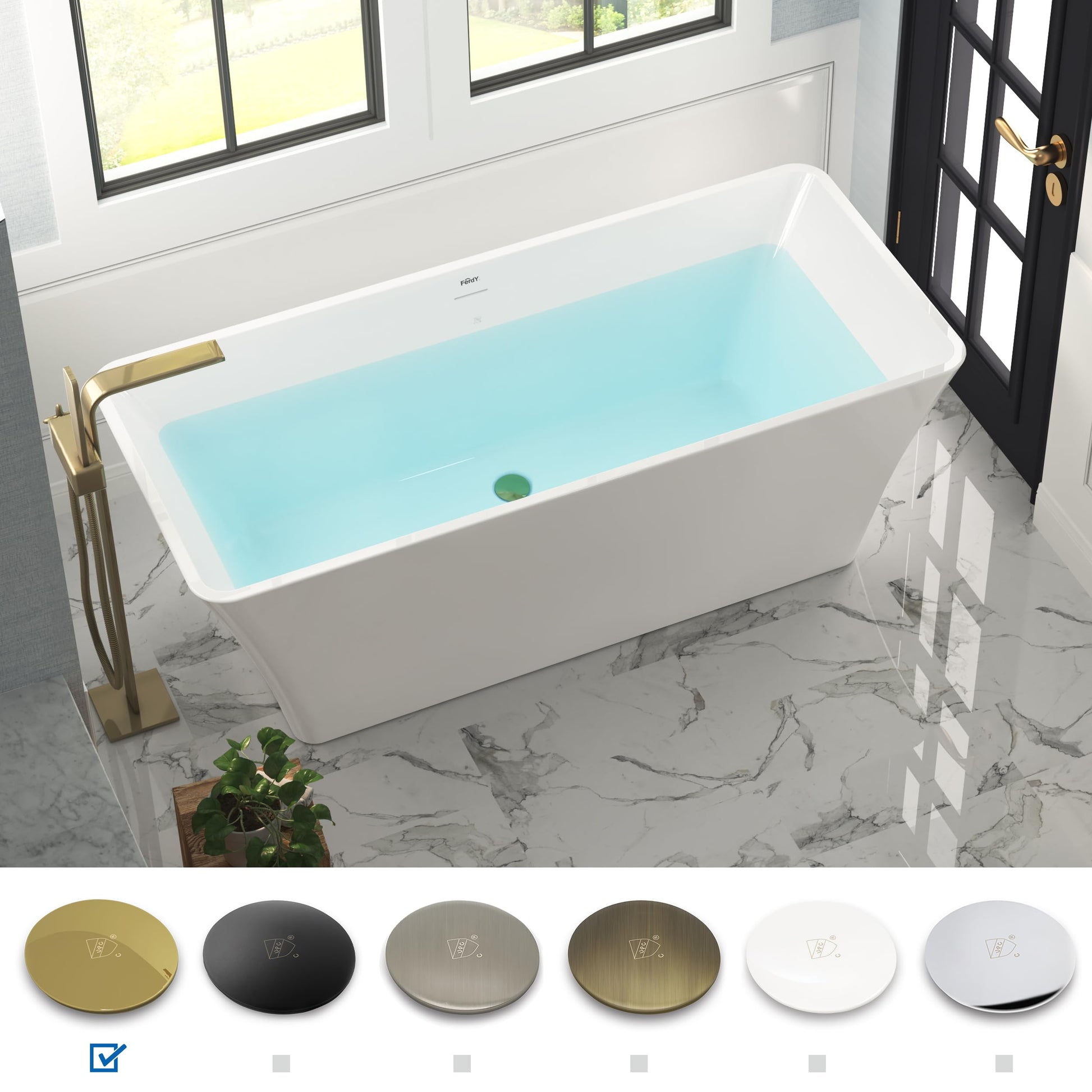 - š EASY INSTALLATION: Illustrated guide with step-by-step instructions makes installation easy. Adjustable leveling feet are included to stabilize the tub to any surface. The bathtub has been pre-installed with a brushed nickel drain. Plastic and brass drainpipes can be found on the inner sides of the bathtub. In addition, 4 additional options for the drain stopper sold separately, contact us to order the drain stopper that best suits your bathroom design.