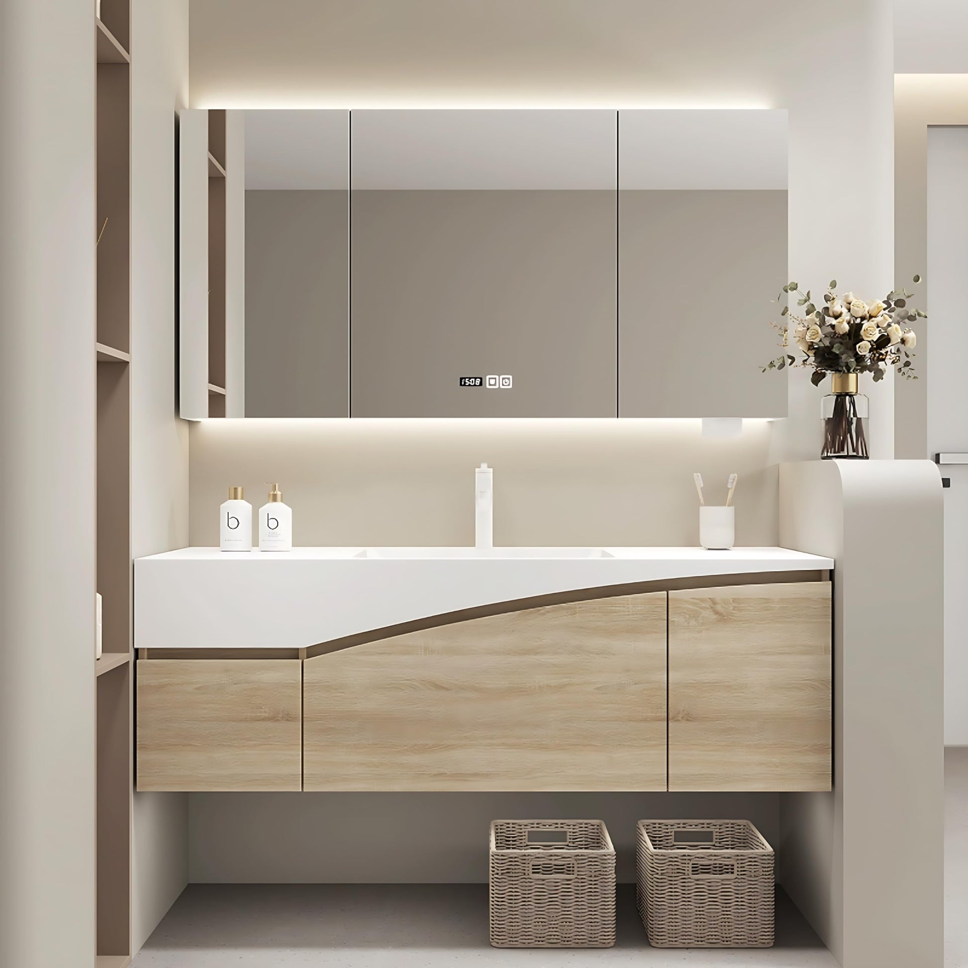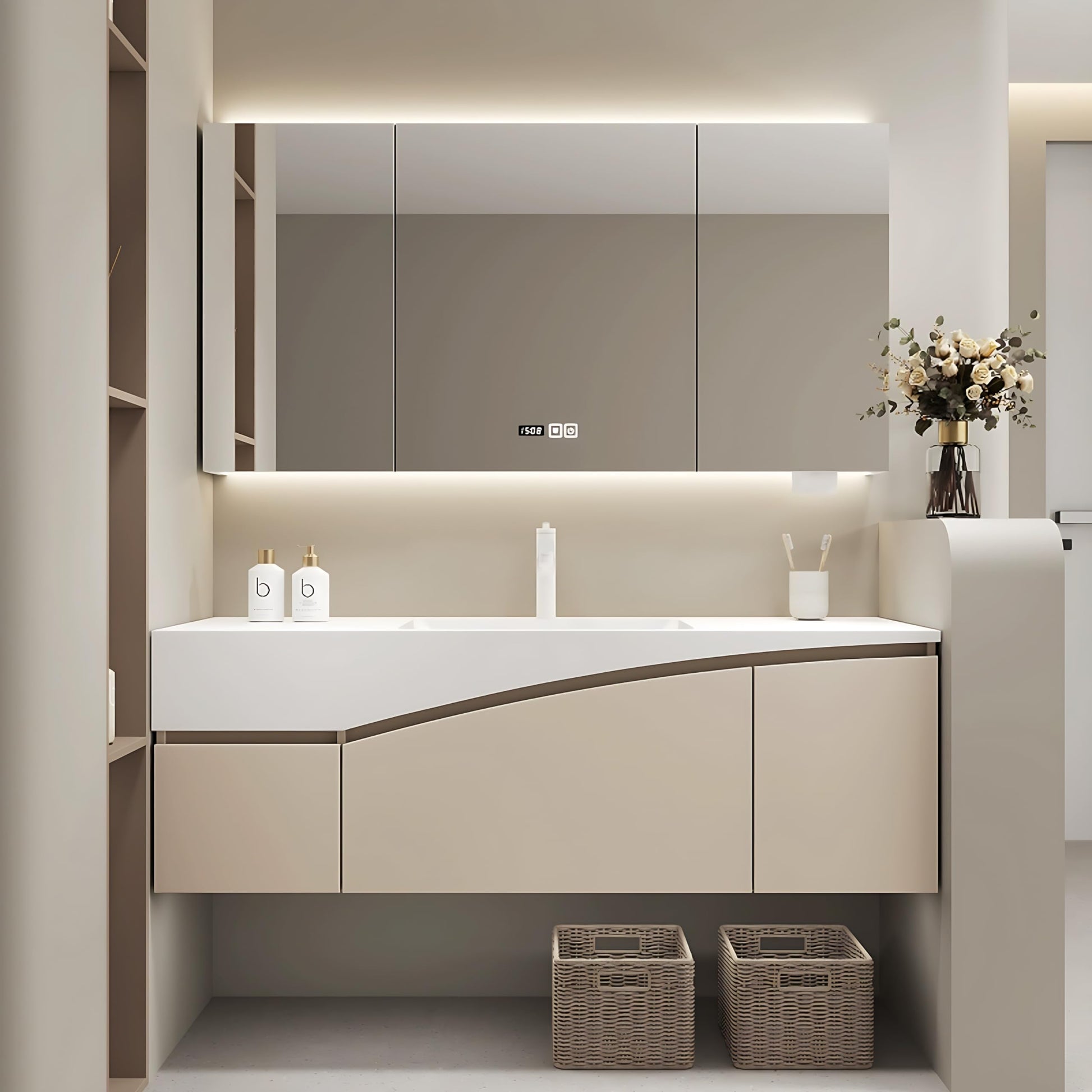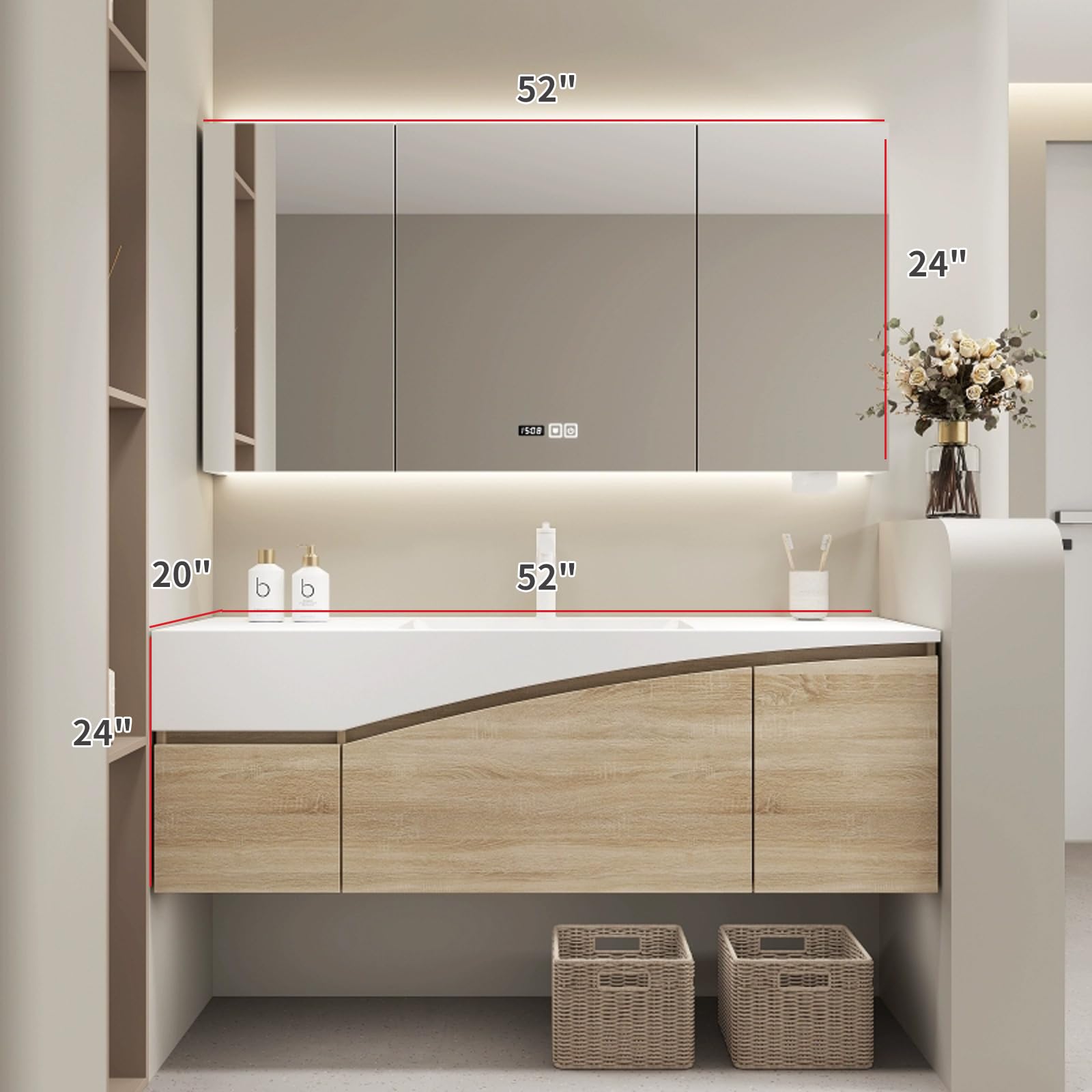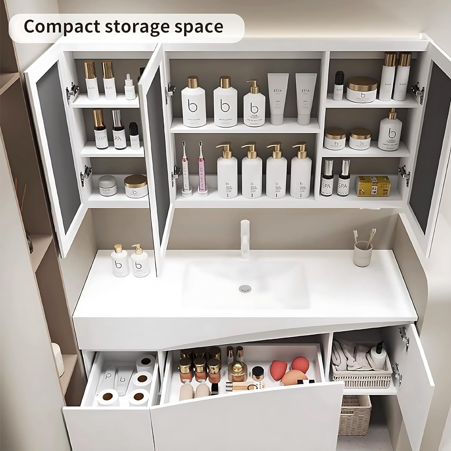- Seamless sink: The bathroom vanity provides a large-capacity sink. The sink adopts a seamless manufacturing process to make cleaning easier and faster. There is ample water storage space to easily meet your various cleaning needs. Immerse yourself in a seamless blend of design and functionality.