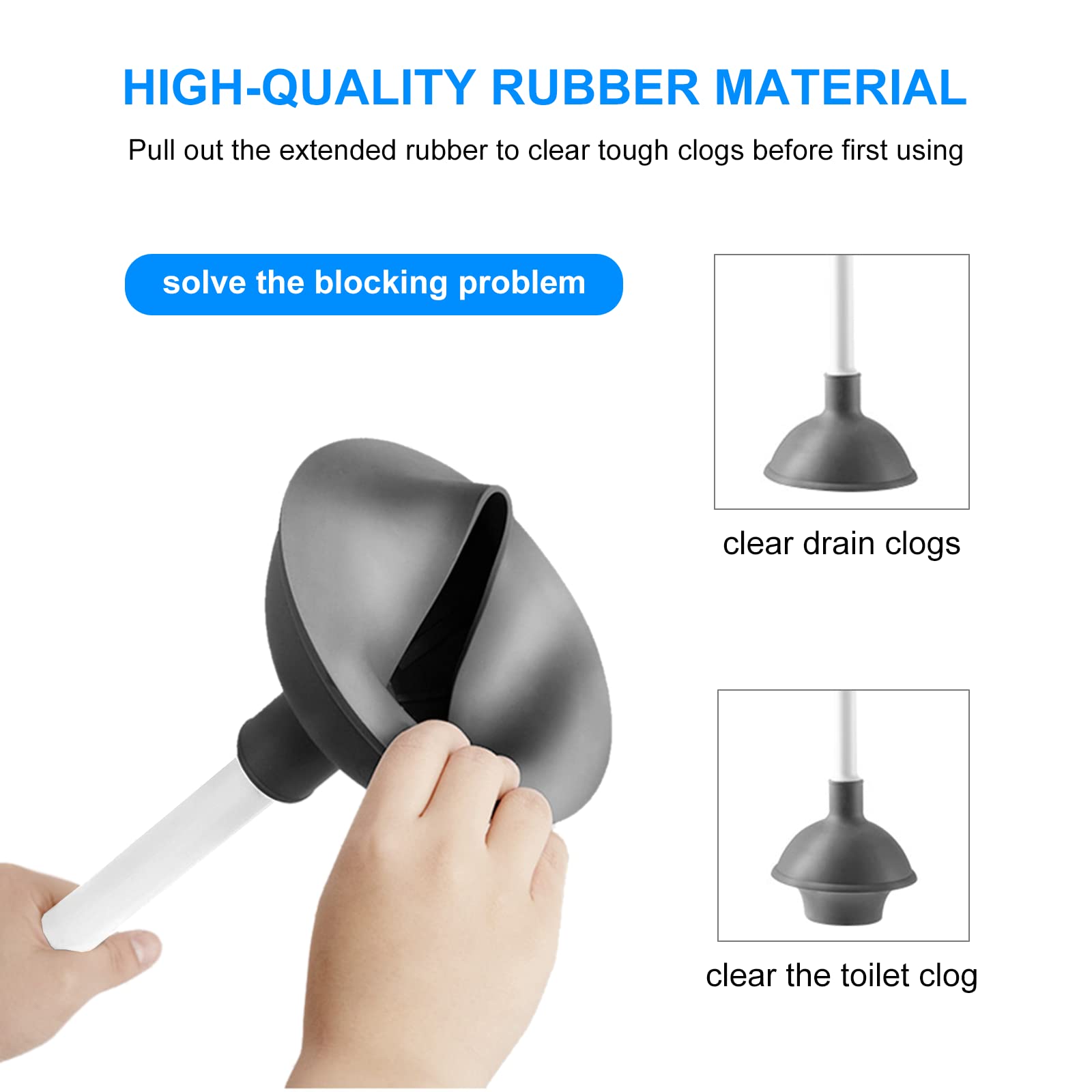 - STRONG-SUCTION TOILET PLUNGER: The professional and strong suction cup, with good grip and extreme suction, make the toilet and bathroom unobstructed. Suitable for commercial, household, RV, etc