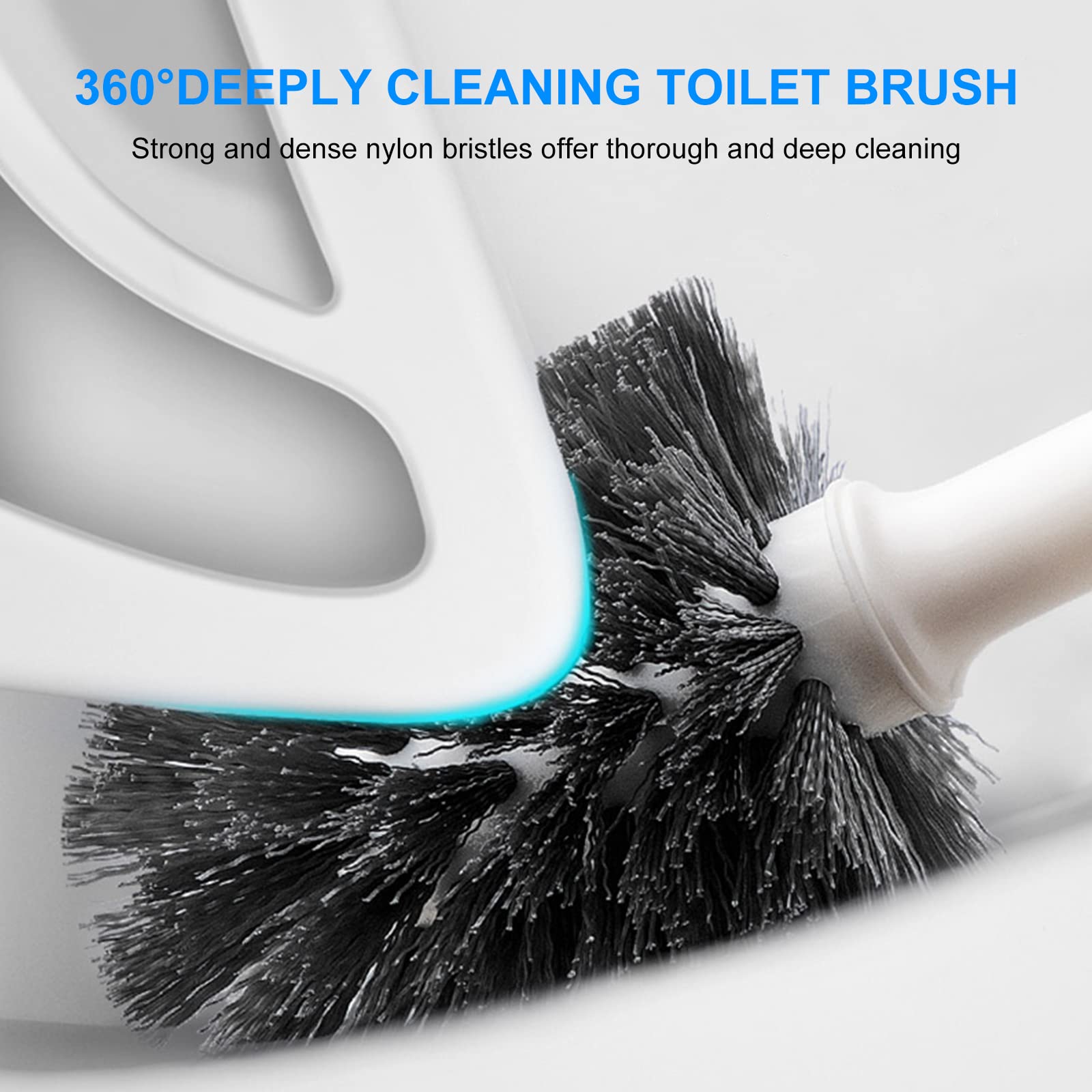 - DENSE & DURABLE BRUSH: The Toilet bowl cleaner brush head with dense, durable, long and black bristles are not easy to get deformed and dirty, the round head can better clean your toilet 360° deeply
