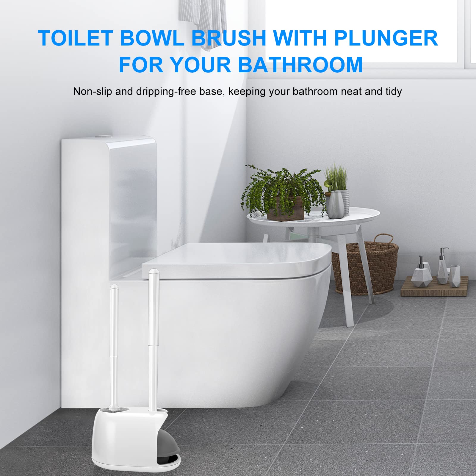 - TOILET PLUNGER AND BRUSH SET: Includes a strong-suction plunger and a high efficient toilet bowl brush as well as a coordinating caddy for convenient access and discreet storage when not in use