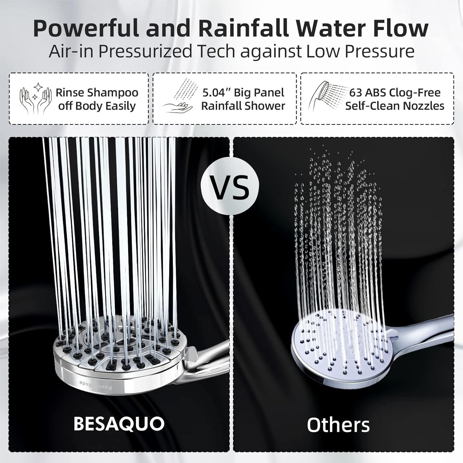 - HIGH PRESSURE SHOWER HEAD: Our USA designed shower head maximize water pressure with Air-in Tech against low pressure condition. BIG PANEL and NO CLOG Nozzles desgin insure no accumulation of grime, massage muscle, soothing fatigue, and quickly rinse hair