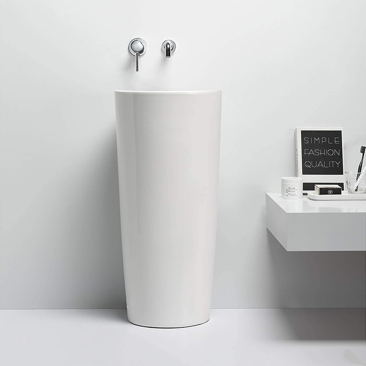 - EZ CLEAN: Easy to clean polished surface. Smooth sides make the sink easy to clean and elegant to the eye. Enhance your bathroom, washroom, laundry room, vanity, or powder room with this elegant pedestal sink.