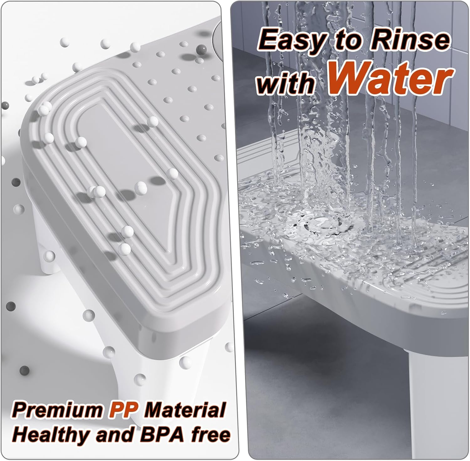- 【Sturdy Construction】Made from durable and safe PP plastic, our toilet stool features a bottom grid support that can withstand up to 500 pounds, ensuring stability and safety for seniors and adults.
