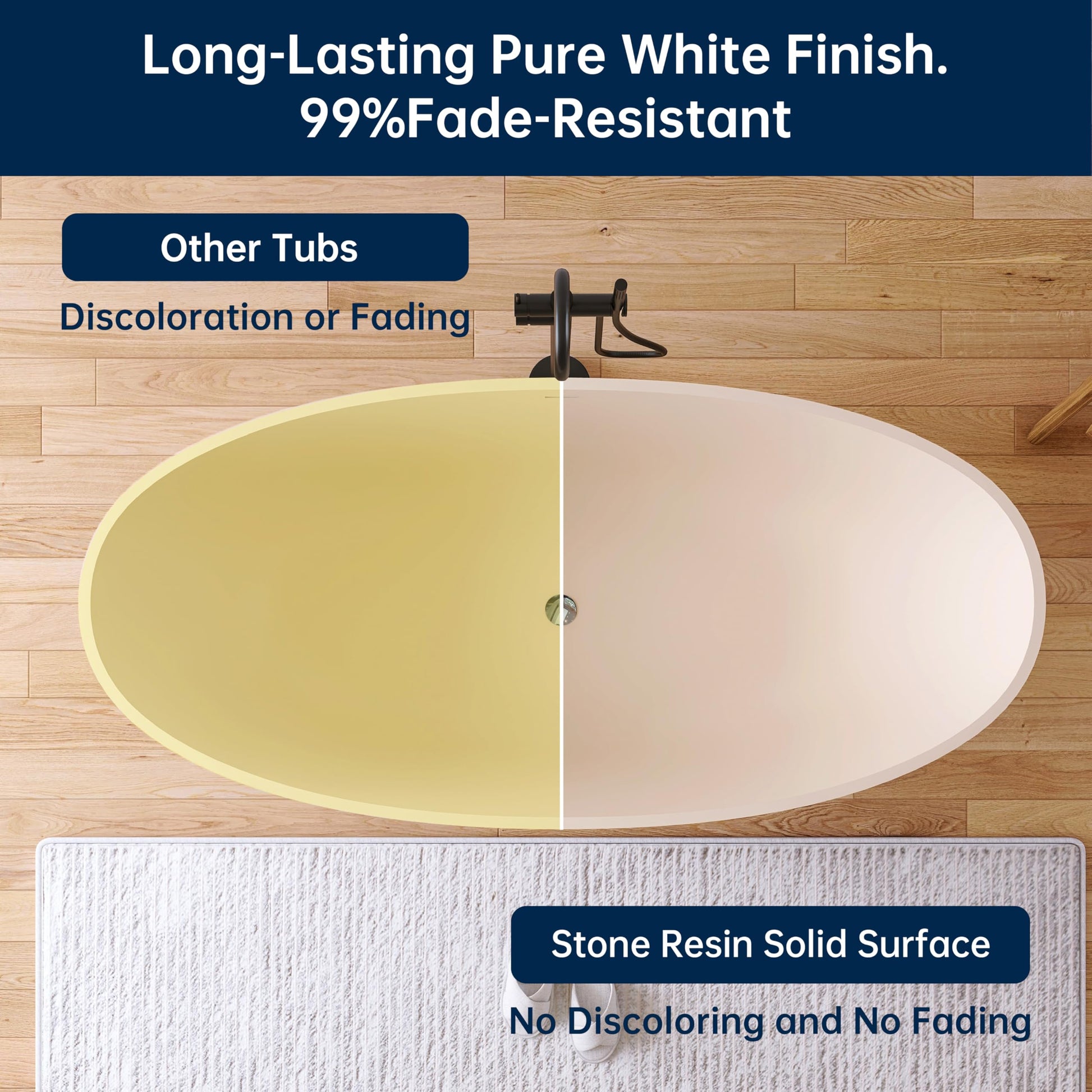 - Superior Quality: Crafted from premium stone resin material, our Stone Resin Freestanding Bathtub 71" guarantees long-lasting durability and exceptional performance. Its solid surface construction ensures a sturdy and reliable bathtub that will stand the test of time