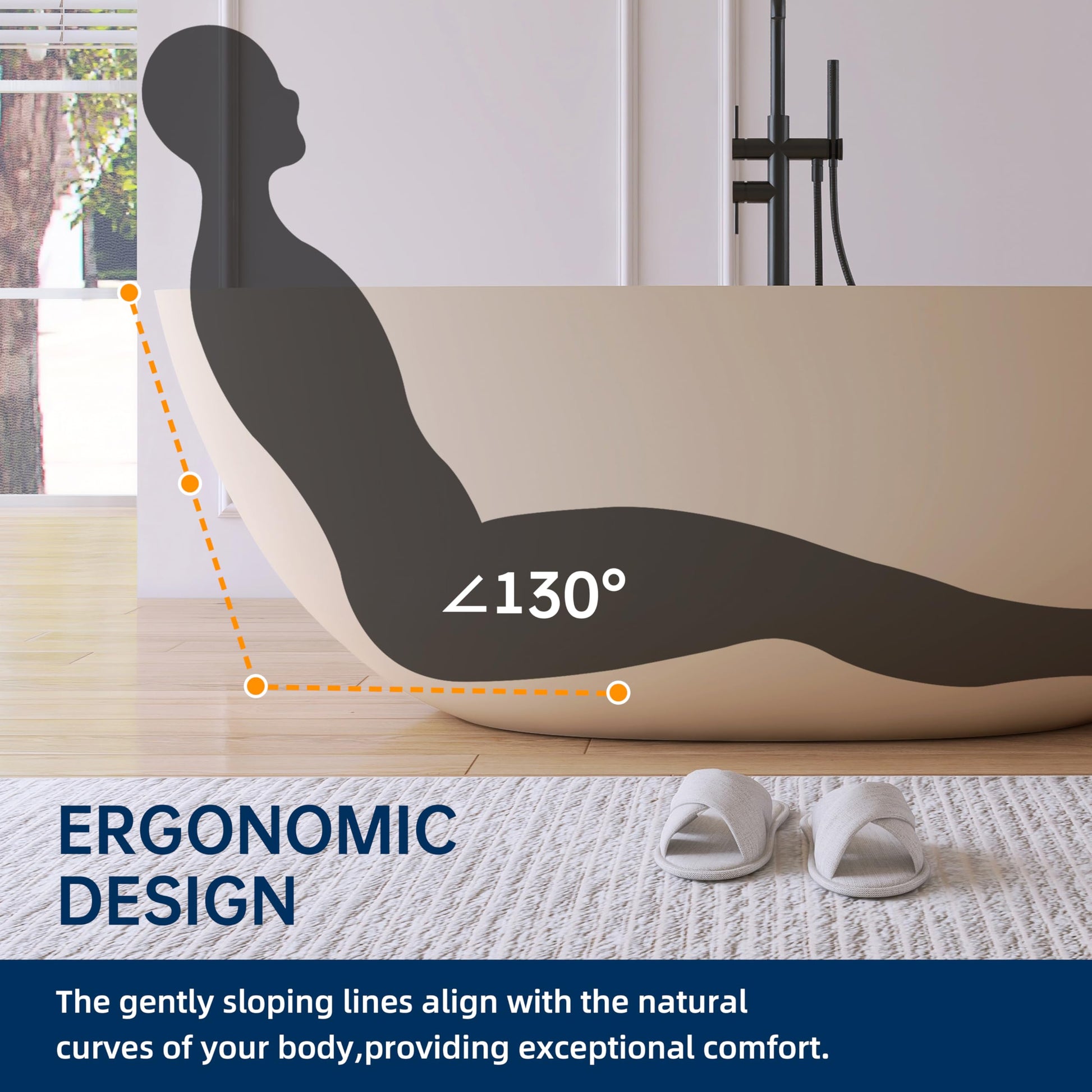 - Elegant Design: With its elegant oval shape, our freestanding bathtub offers a luxurious and sophisticated addition to your bathroom decor. The sleek and modern design adds a touch of style and refinement, elevating the overall ambiance of your space