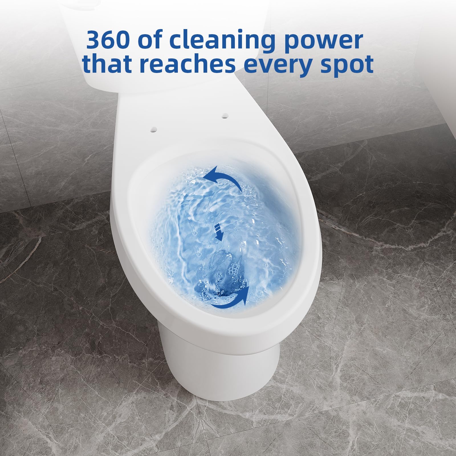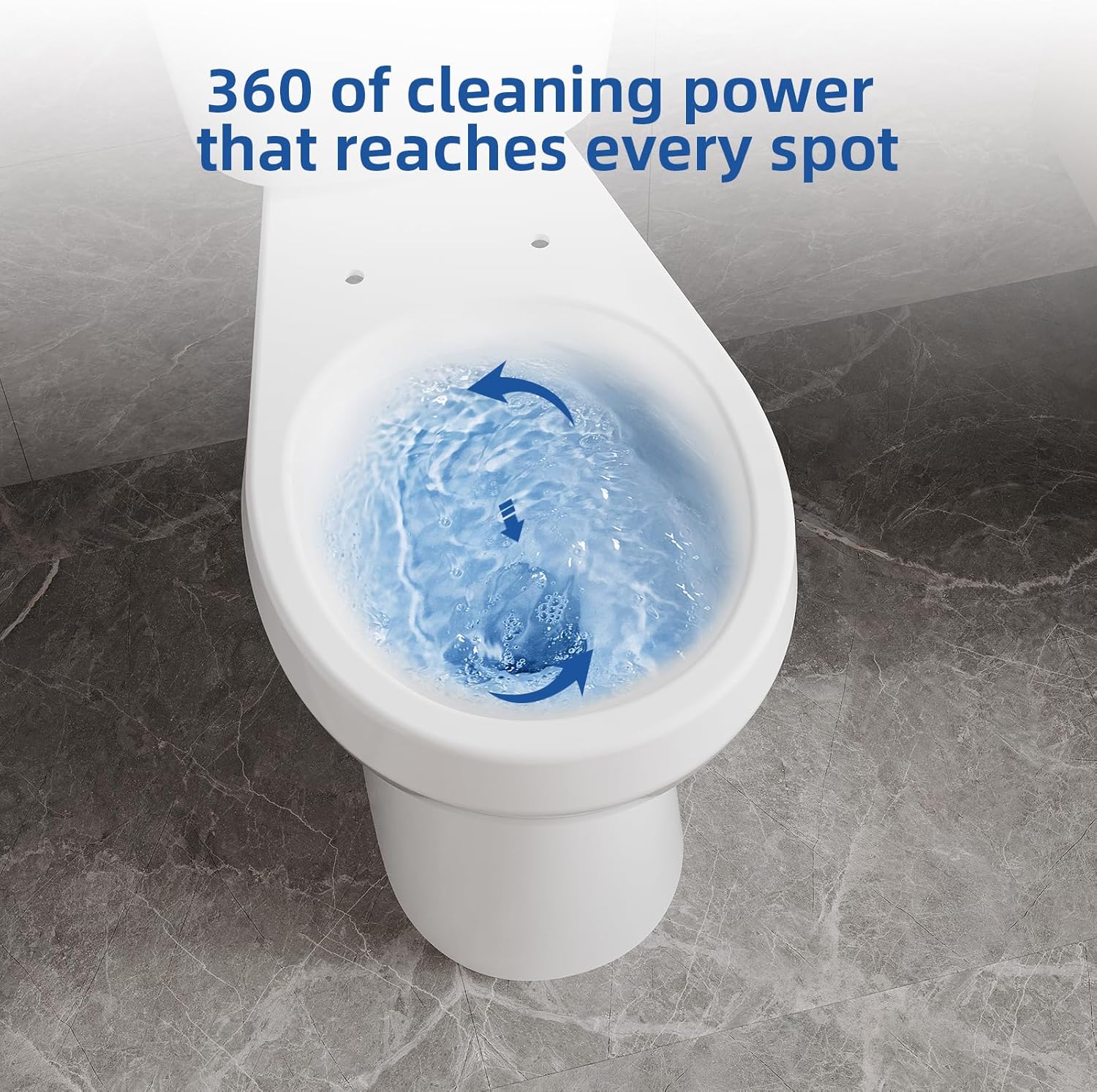 - Efficient Flush System: Equipped with a powerful flush mechanism, this model conserves water without sacrificing power. Precision-engineered siphon technology ensures quiet. The 360° flushing system effectively cleans the entire toilet without leaving any stains or residue.