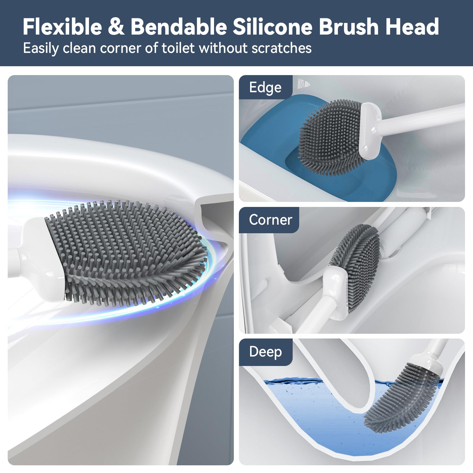 - FLEXIBLE SILICONE BRUSH: Flexible silicone toilet brush is not easy to get deformed, it's economical and practical. Silicone toilet brush offers thorough and deep cleaning of those hard-to-reach corner. If you wanna clean hard objects, we recommend to buy our store's traditional bristles toilet brush.