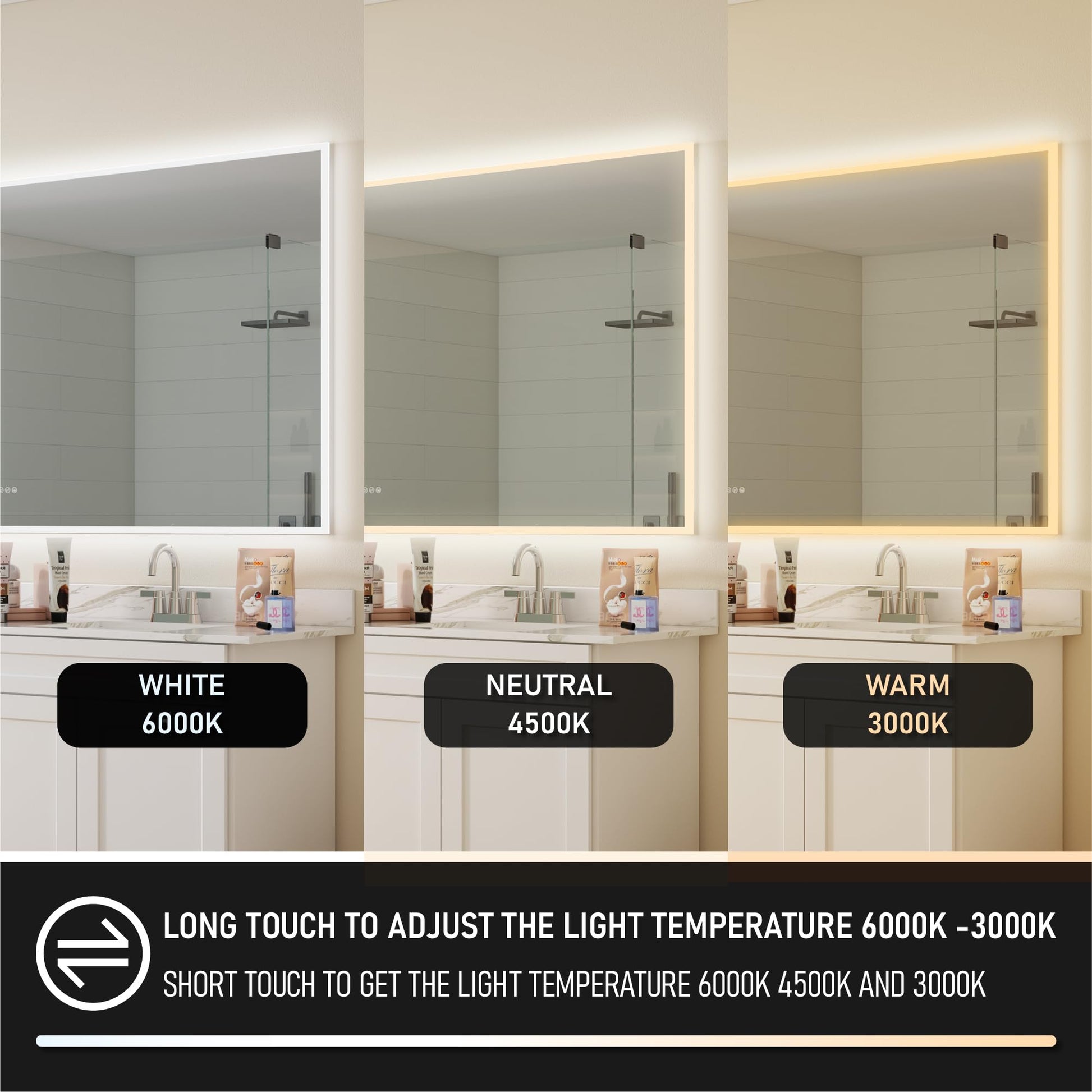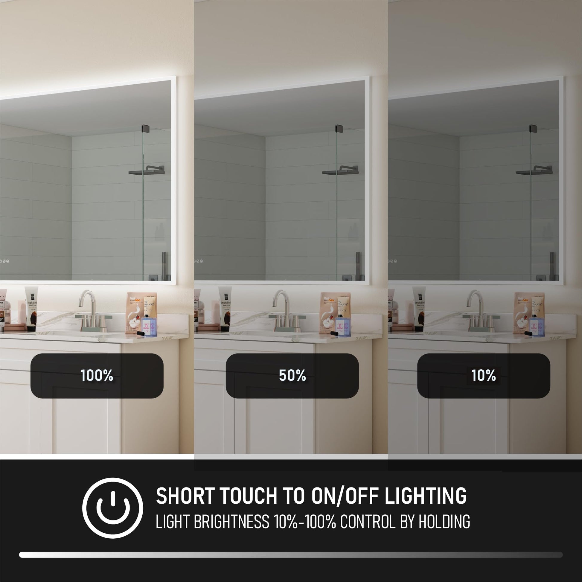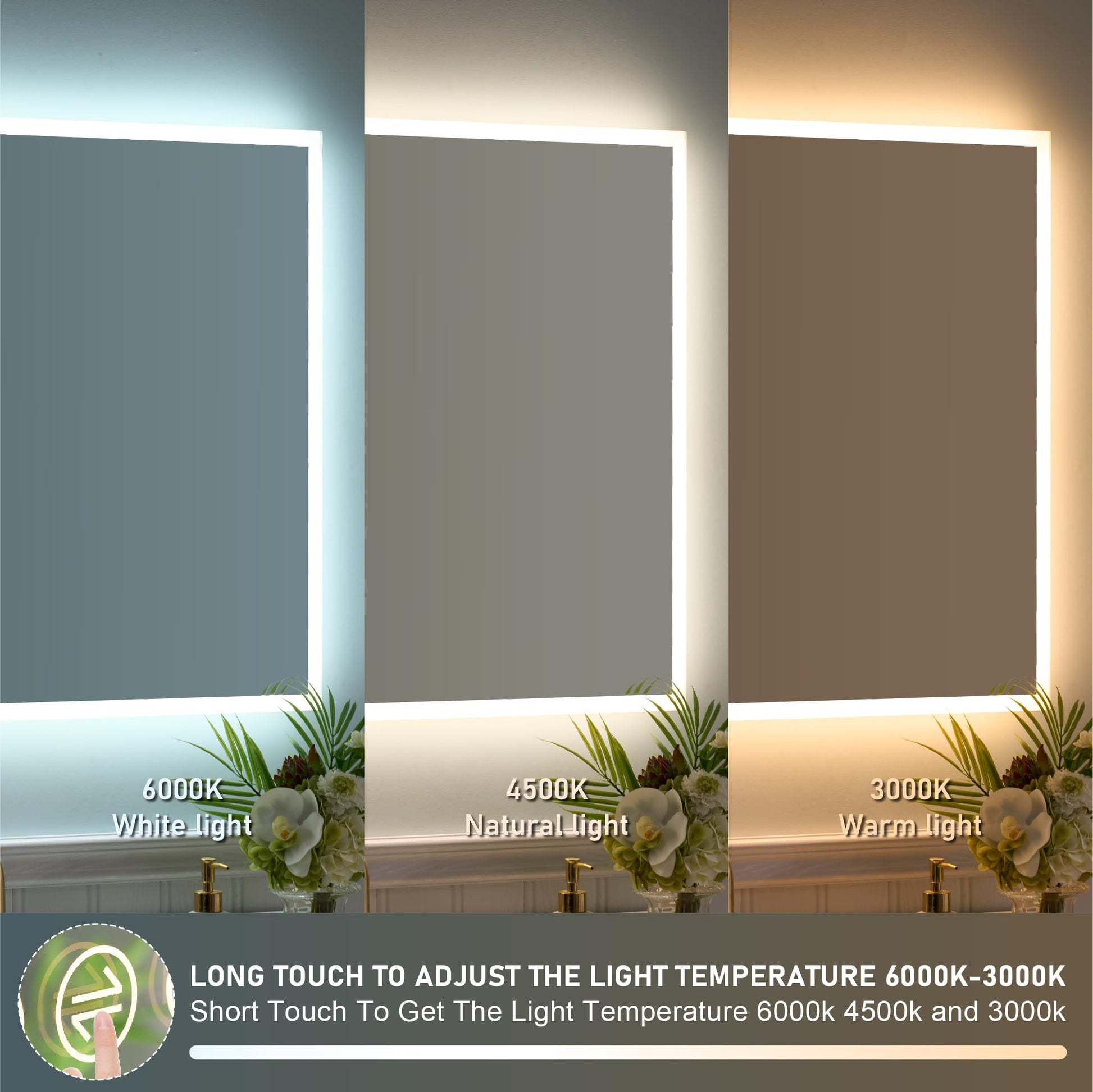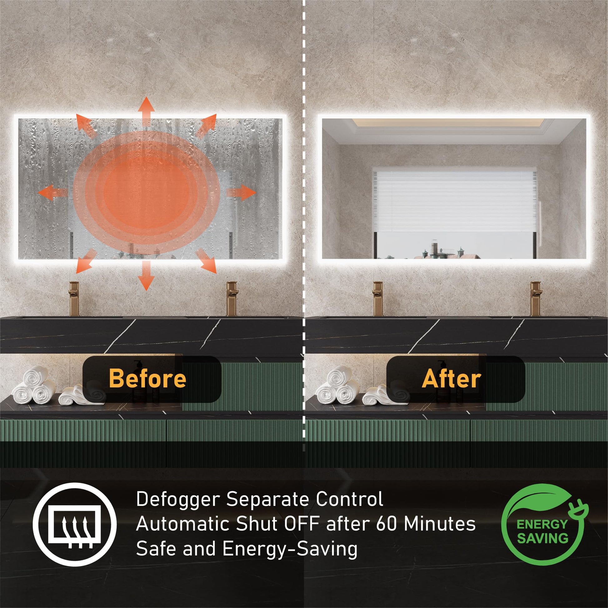 - Even and Gentle Illumination: Our LED mirror for bathroom is equipped with solid PMMA diffuser LED lighting fixtures, ensuring that light is evenly and softly distributed. And brightness at 2200 lumens ensures consistent lighting with no hot spots or dark spots.