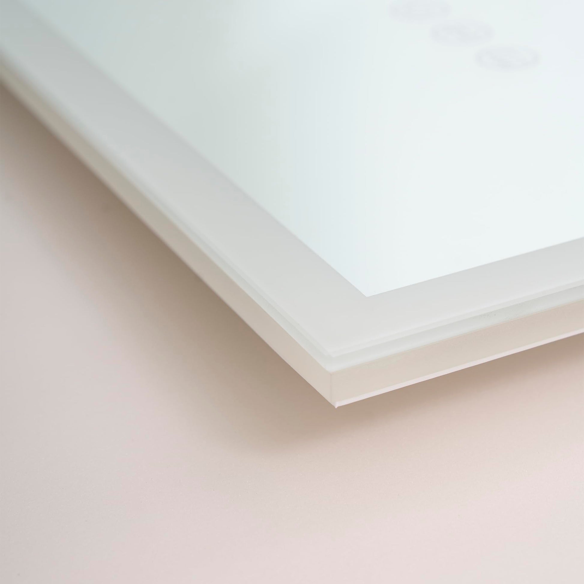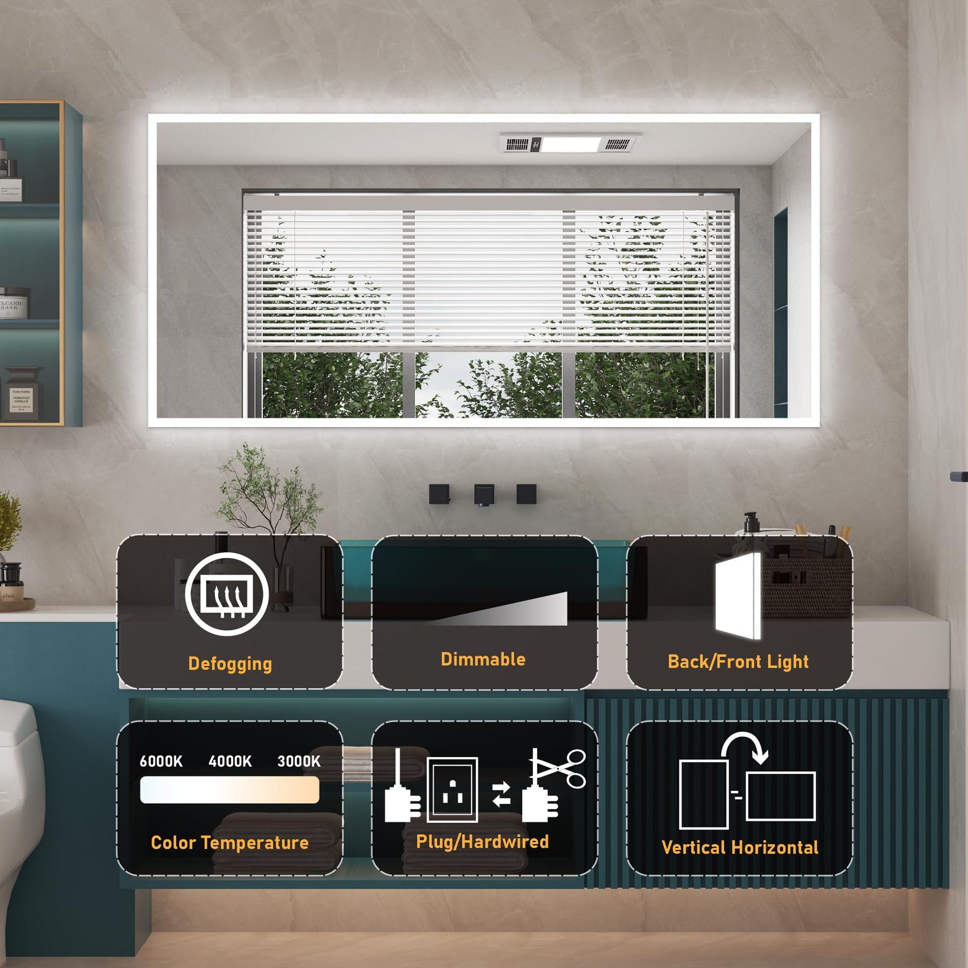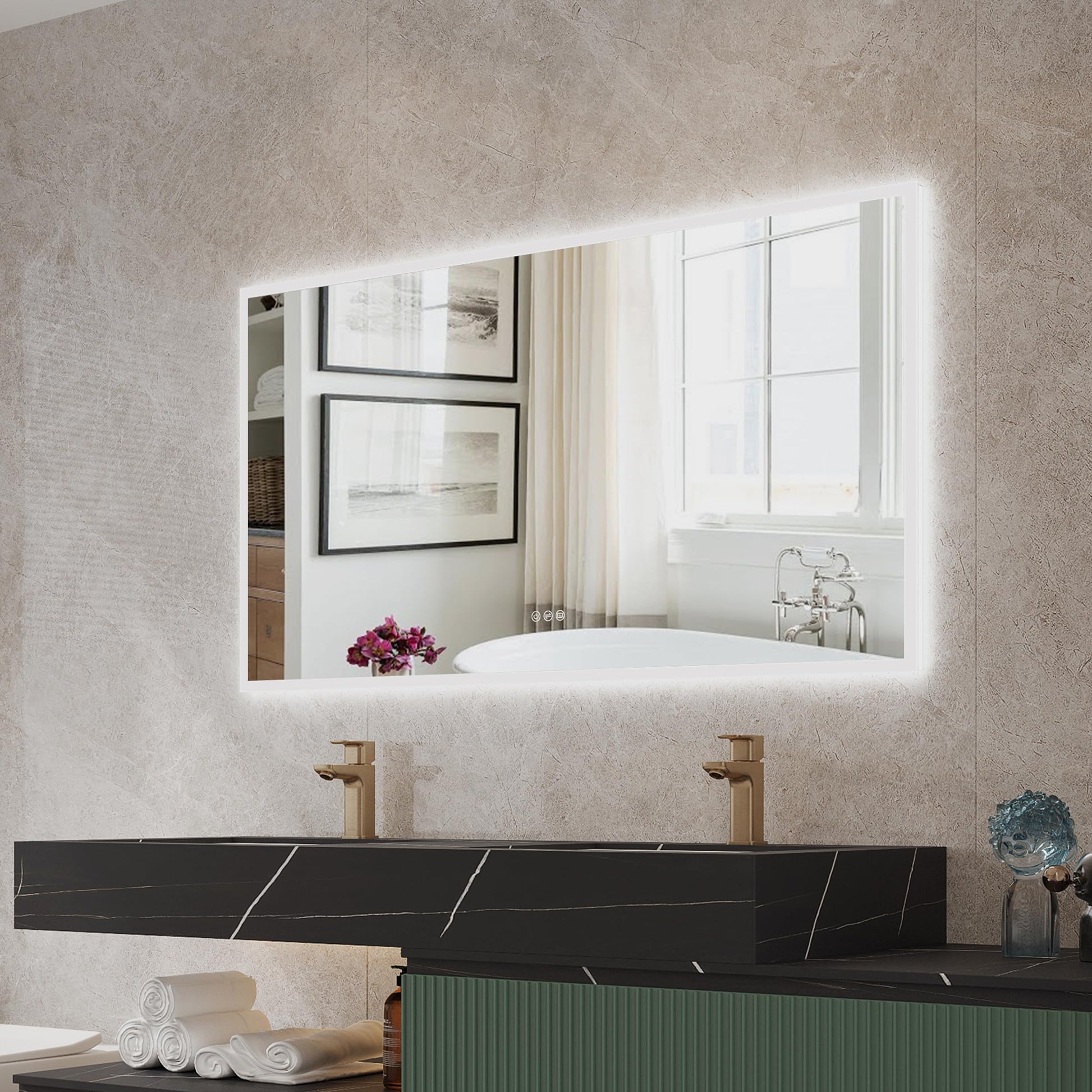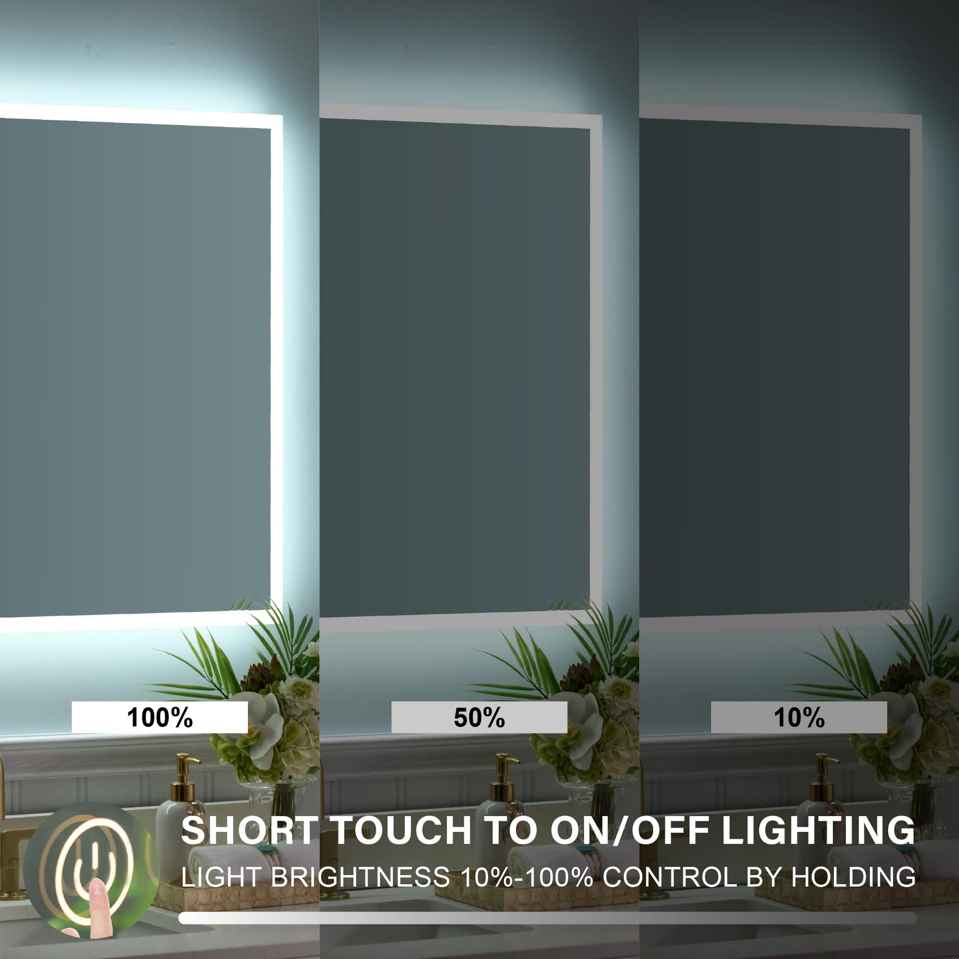 - Even and Gentle Illumination: Our LED mirror for bathroom is equipped with solid PMMA diffuser LED lighting fixtures, ensuring that light is evenly and softly distributed. And brightness at 2200 lumens ensures consistent lighting with no hot spots or dark spots.