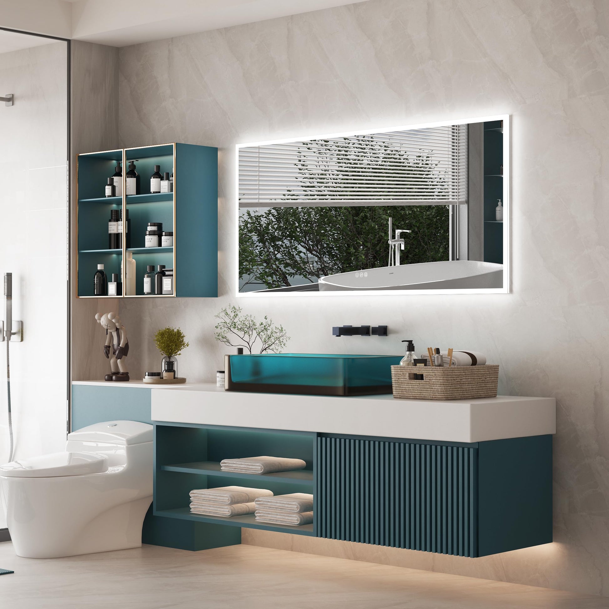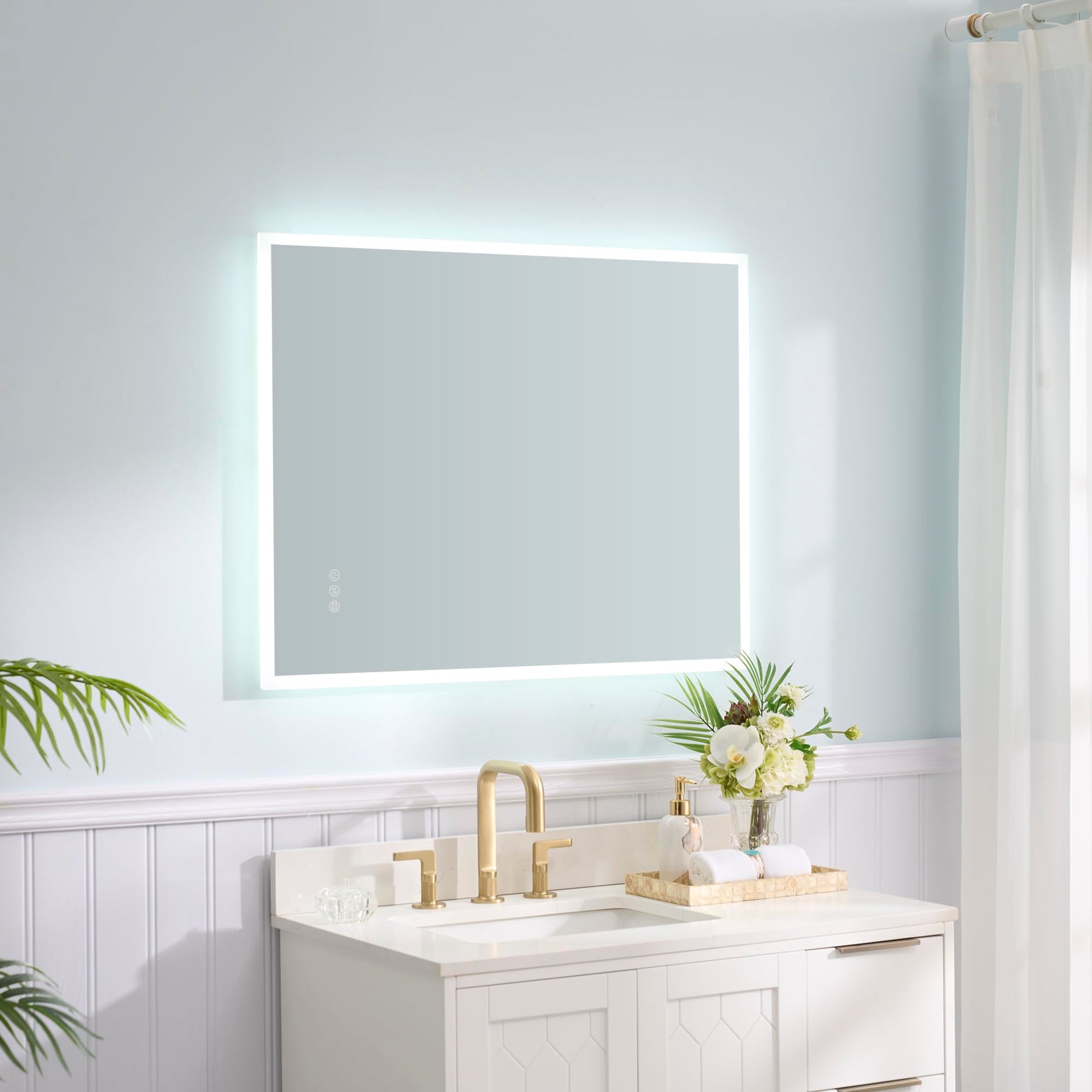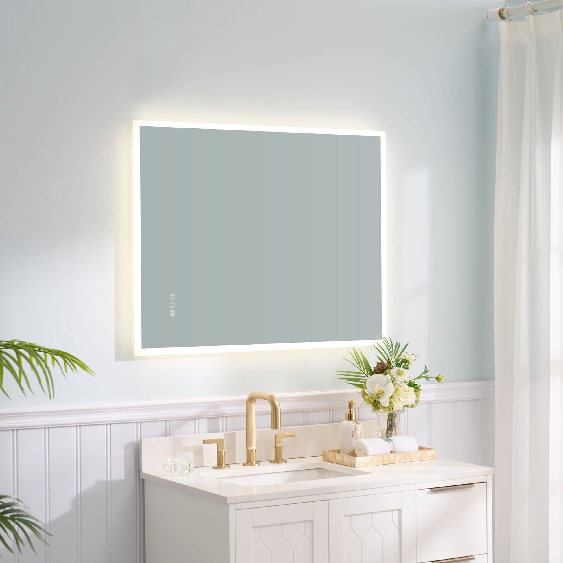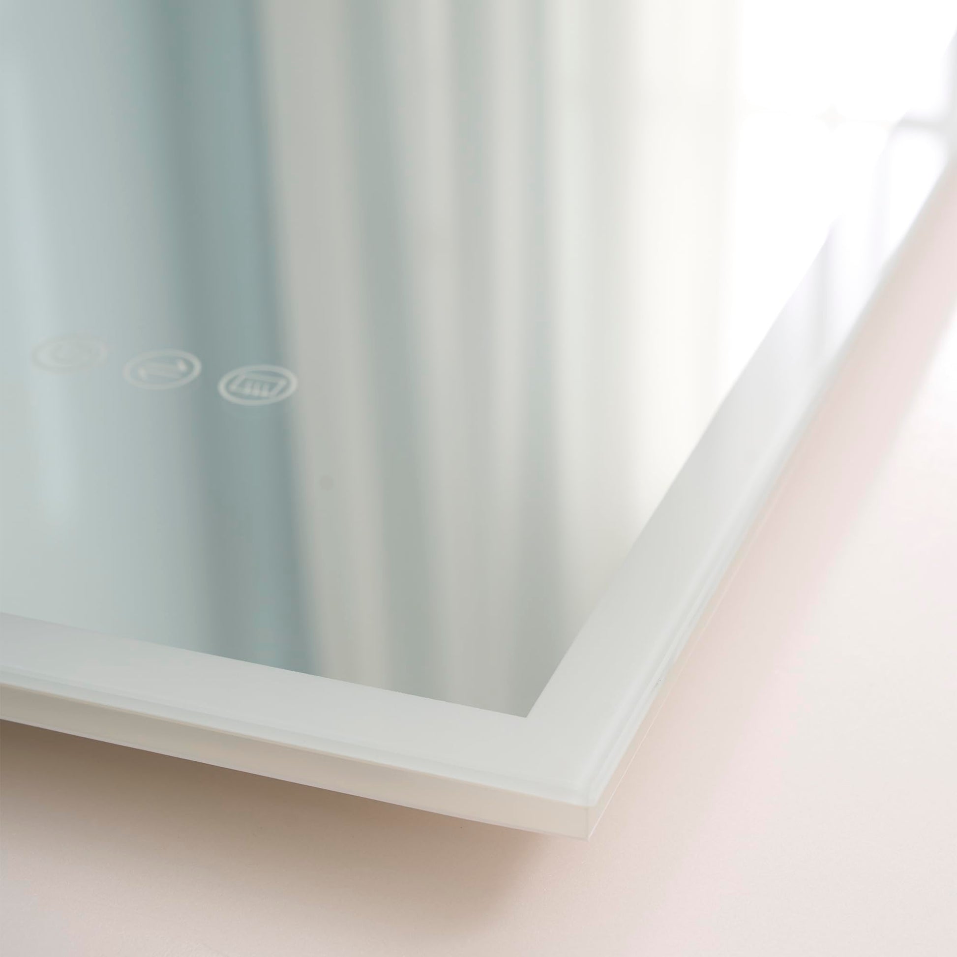 - Even and Gentle Illumination: Our LED mirror for bathroom is equipped with solid PMMA diffuser LED lighting fixtures, ensuring that light is evenly and softly distributed. And brightness at 2200 lumens ensures consistent lighting with no hot spots or dark spots.