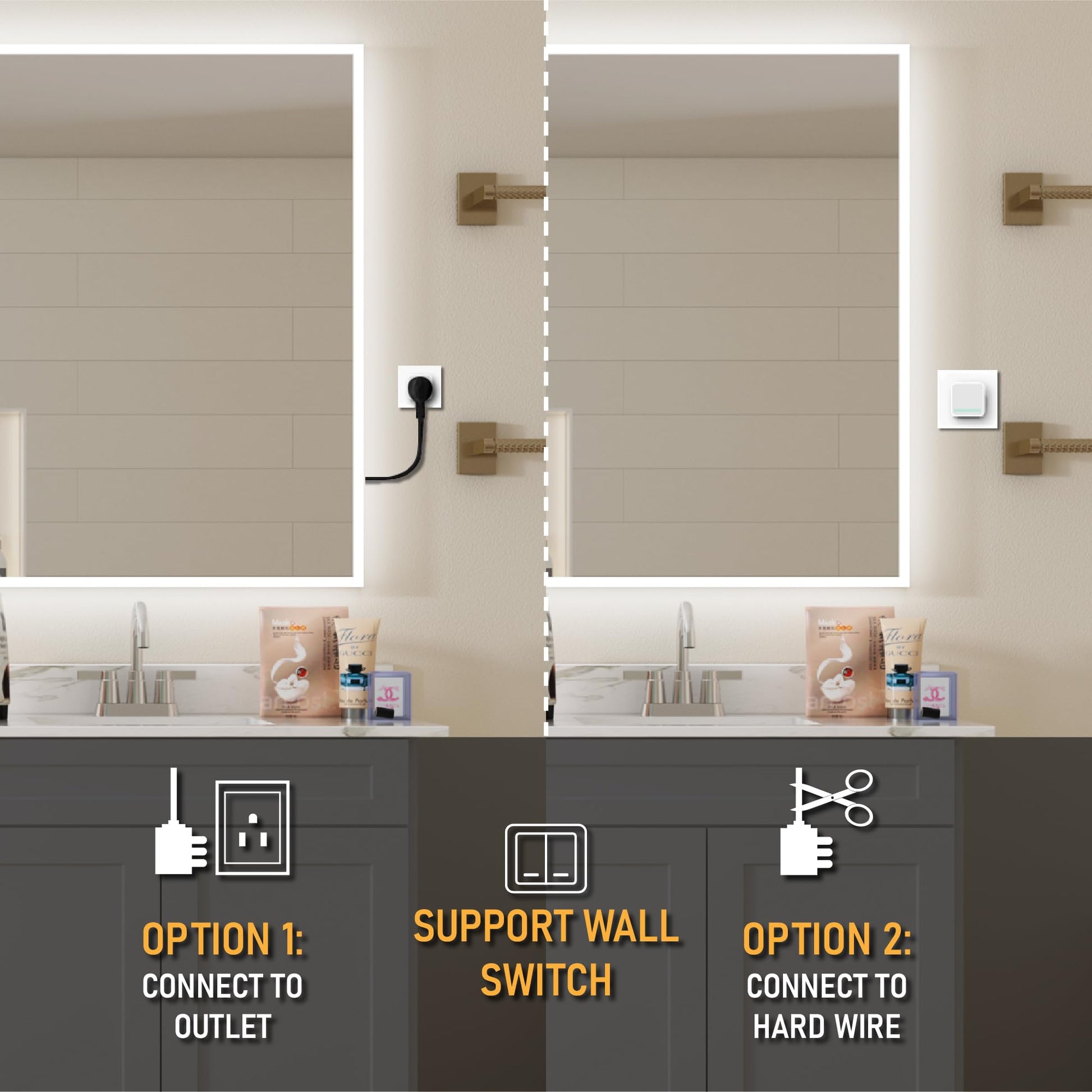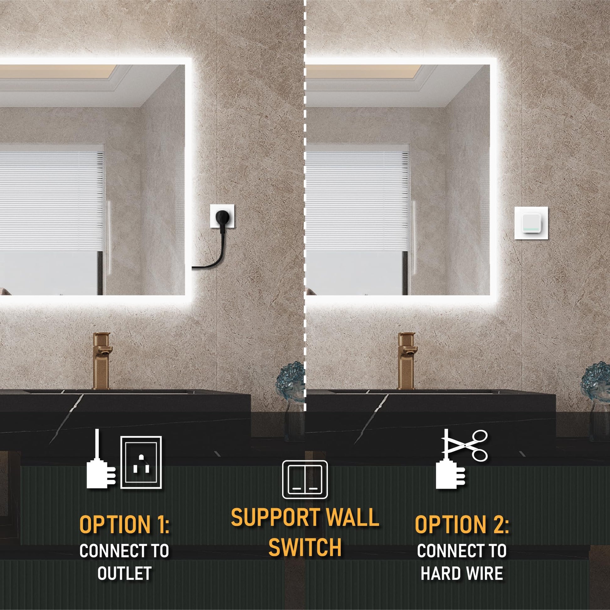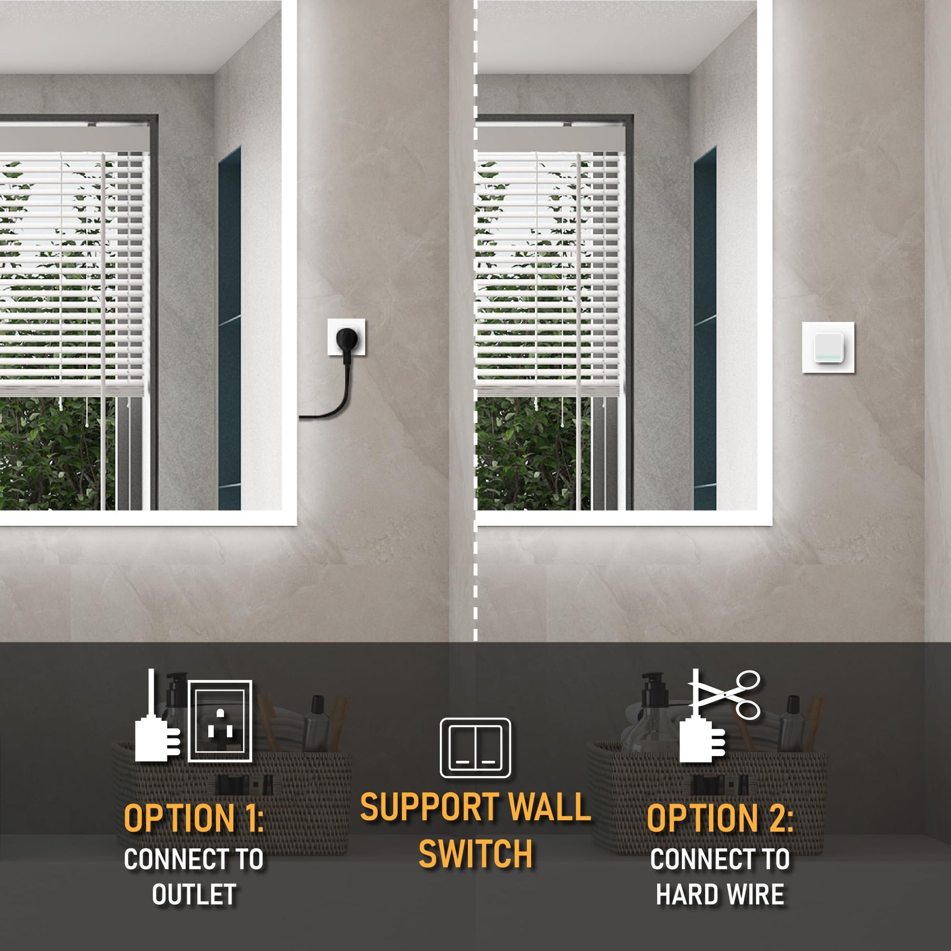 - Multiple Wiring Methods: Packed with a plug so the mirror can be installed with plug or hardwire as your wish. And power switch and anti-fog switch are separate control.