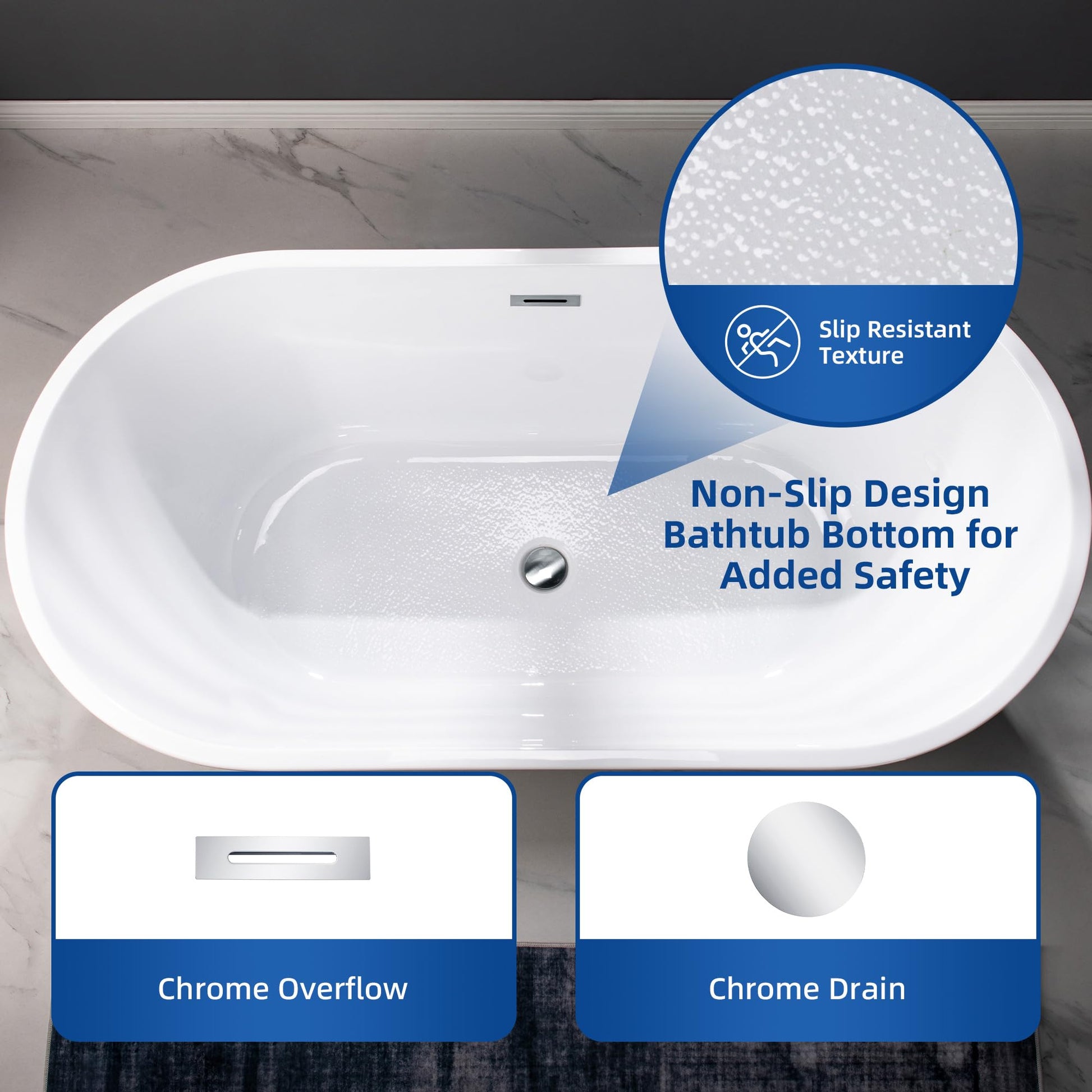 - ✅ [NON-SLIP DESIGN]: Non-Slip bathtub meet ASTM standards for Slip Resistance to keep our customers safe, while providing a smooth easy to keep clean surface that won’t discolor over time.