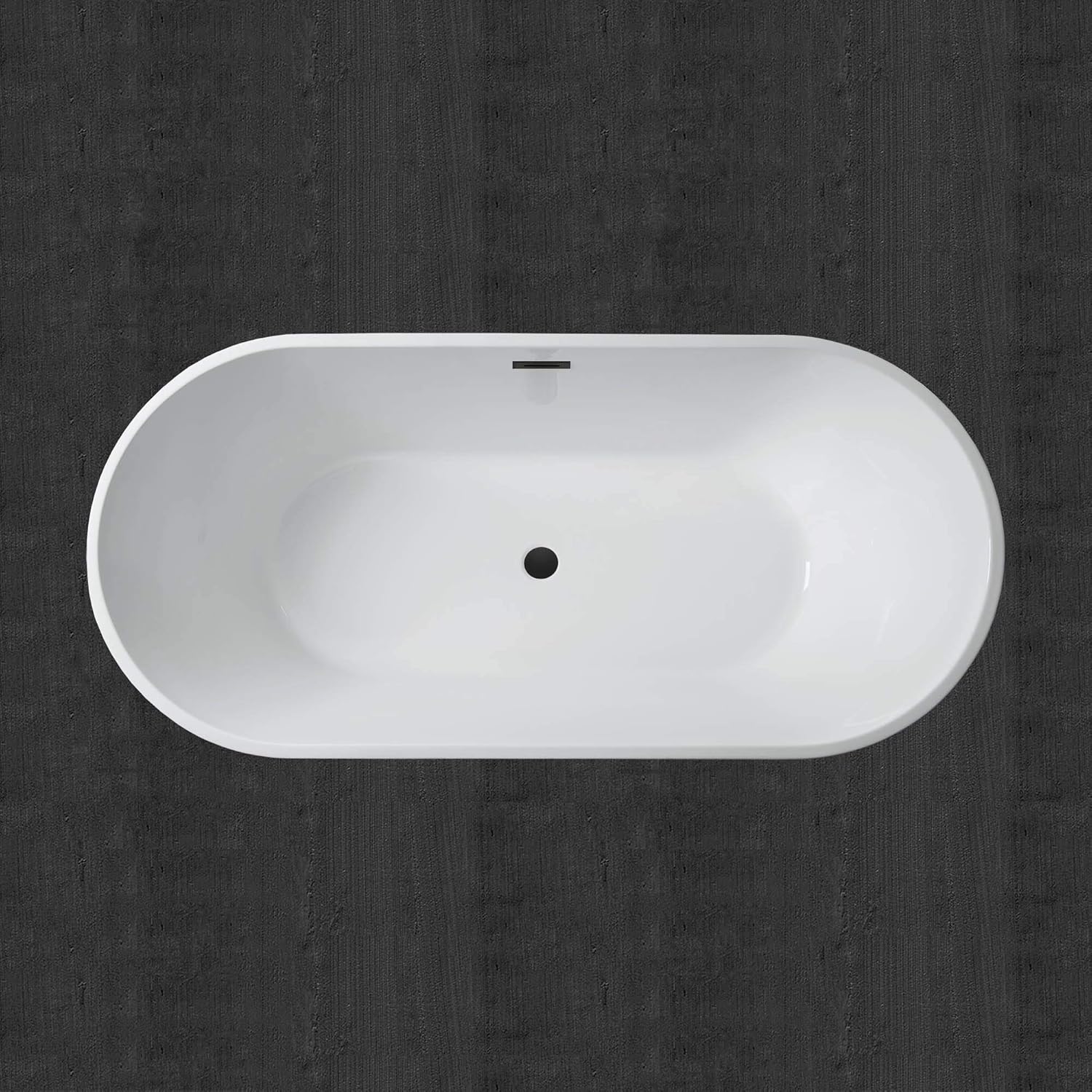 WOODBRIDGE 67" Acrylic Freestanding Bathtub Contemporary Soaking Tub , White Acrylic ( Matte Black Drain/Overflow), B0013--MB-Drain &O