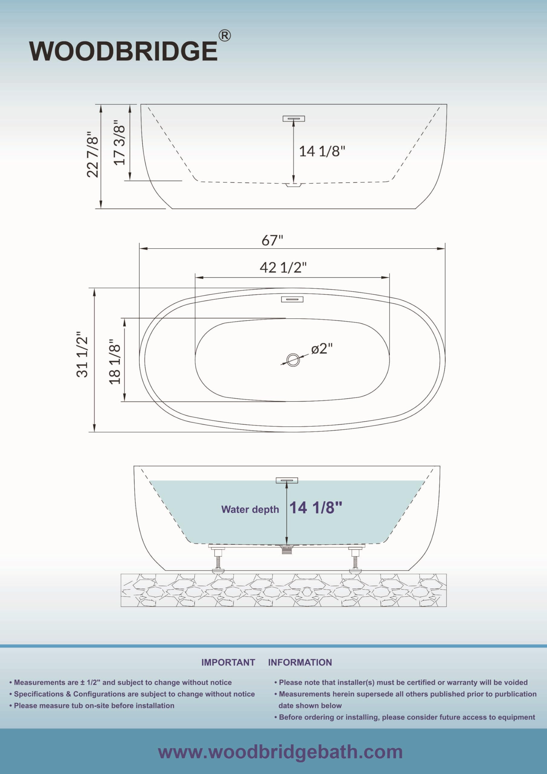 - [DESIGN INSPIRATION]: WOODBRIDGE bathtub is luxury, comfort and chic style. Its size is ample yet economical allowing it to fit a variety of spaces. Gently sloping lines follow the natural curves of your body providing exceptional comfort.