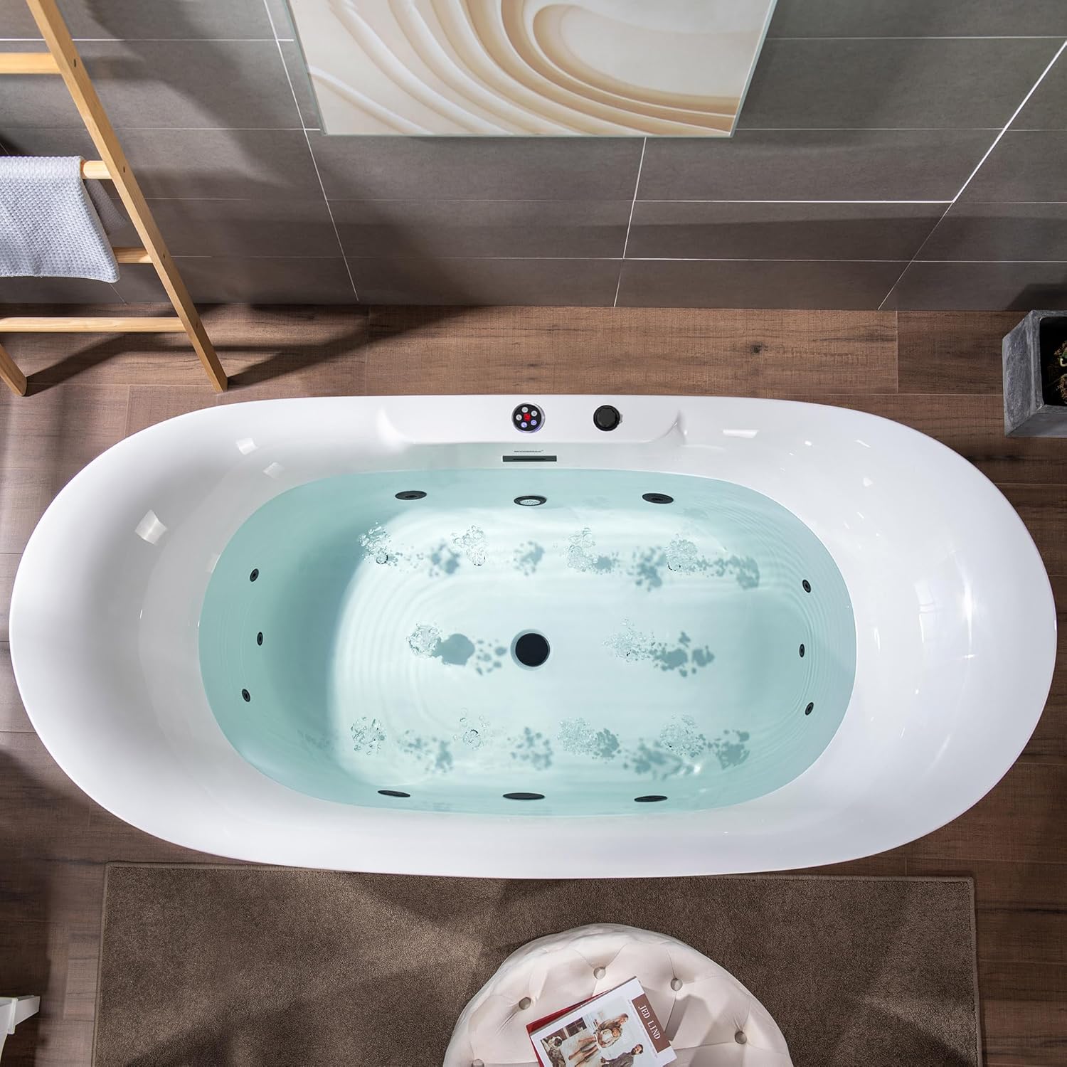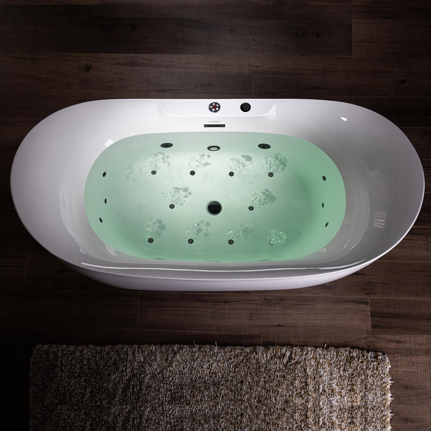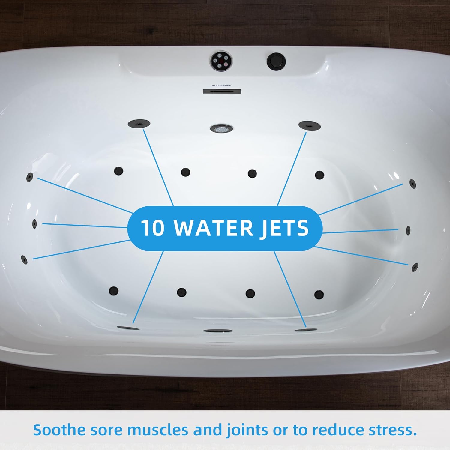 - ✅ [WHIRLPOOL AND AIR BUBBLE]: WOODBRIDGE Deluxe acrylic freestanding bathtub combine with whirlpool and air bubble jets in one tub, pop-up drain, overflow cover, jets and nozzles are in matte black finish.