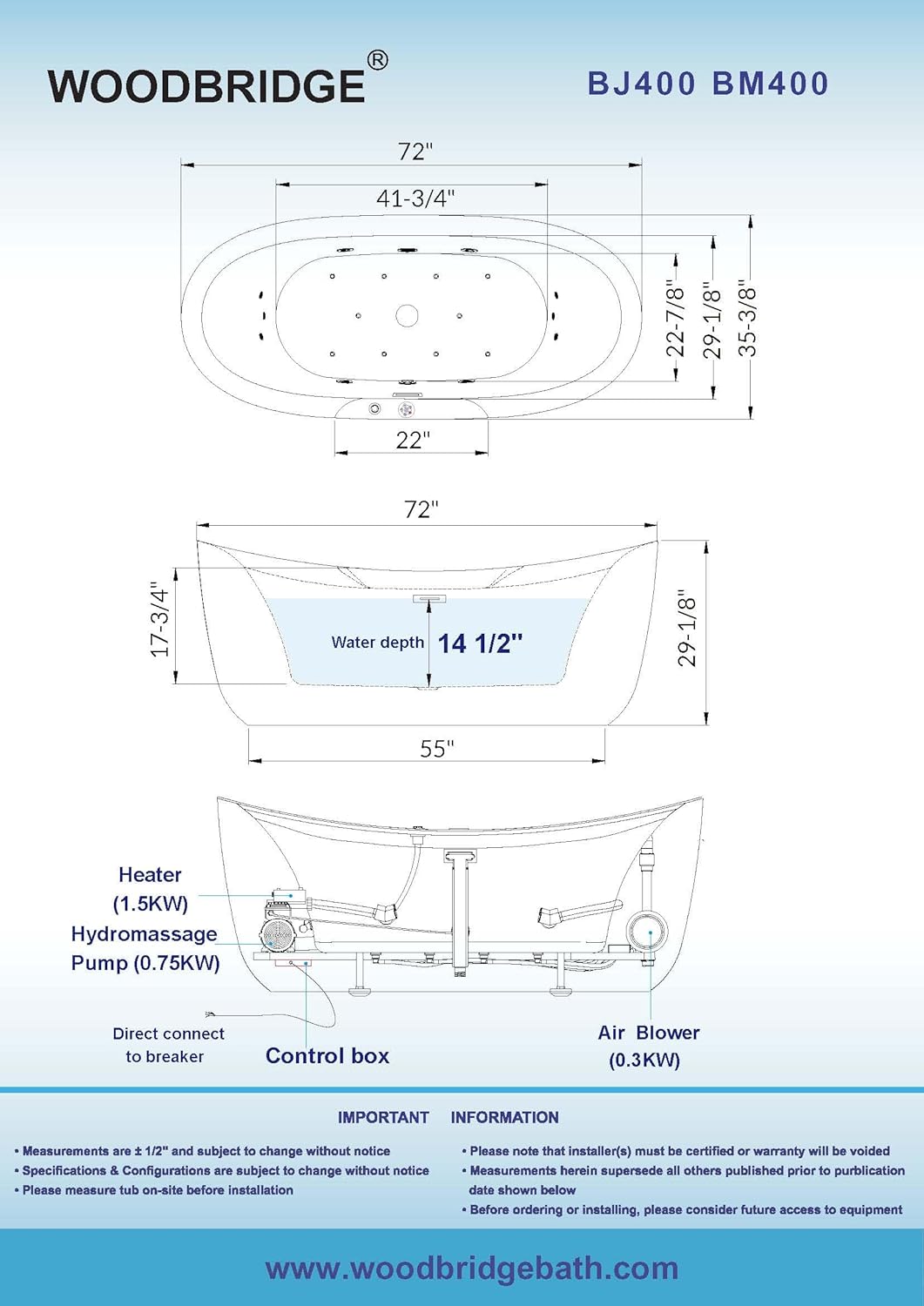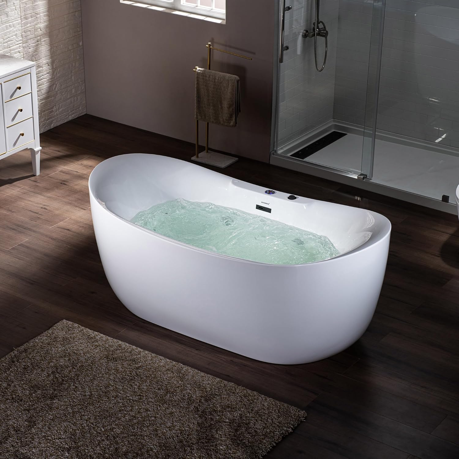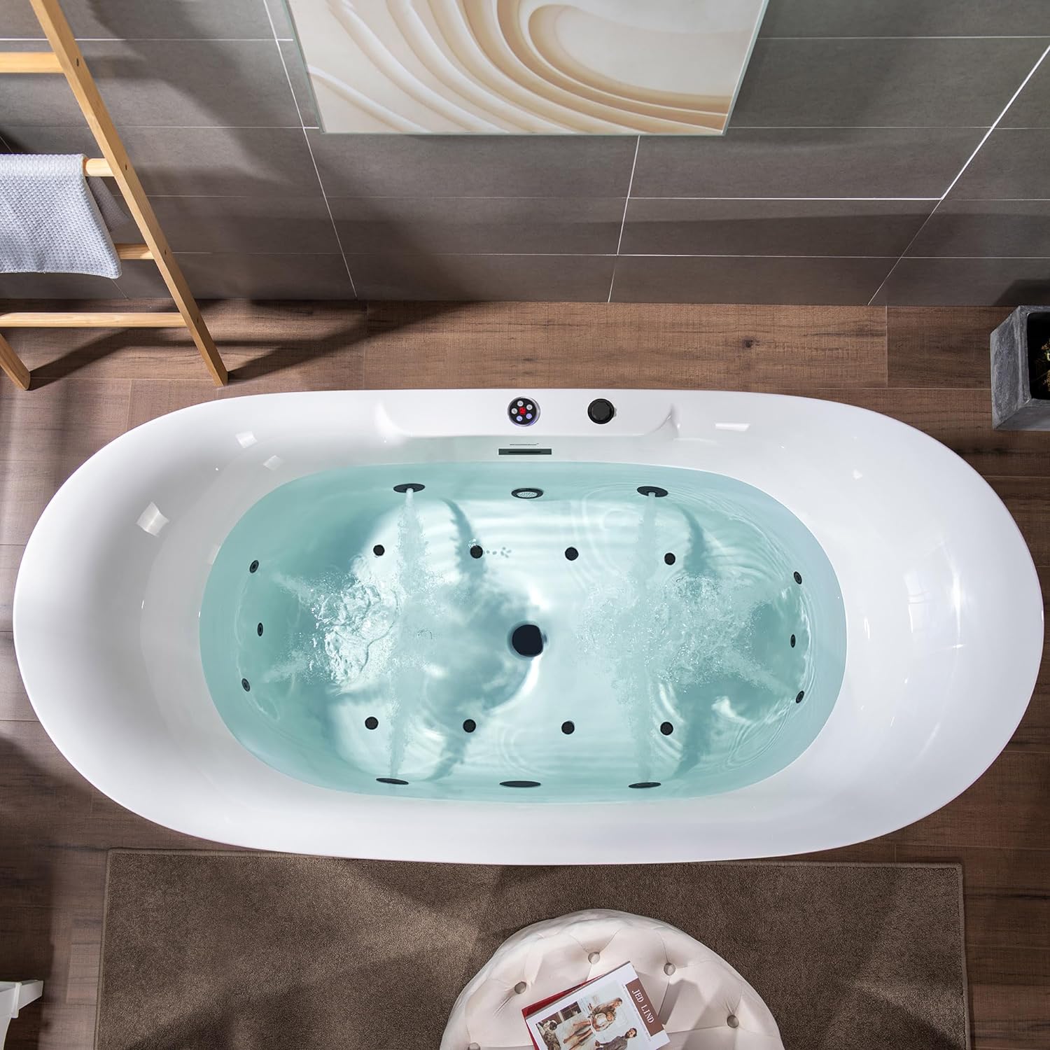 - ✅ [WHIRLPOOL AND AIR BUBBLE]: WOODBRIDGE Deluxe acrylic freestanding bathtub combine with whirlpool and air bubble jets in one tub, pop-up drain, overflow cover, jets and nozzles are in matte black finish.