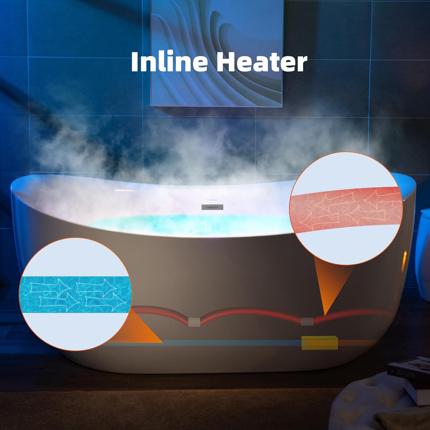 - ✅ [HEATED SOAKING TUB]: With Inline Heater. This bathtub allows for a longer soak without adding more hot water. Setting the water temperature on LED control panel. Enjoy a hot bath for the entire bathing experience.