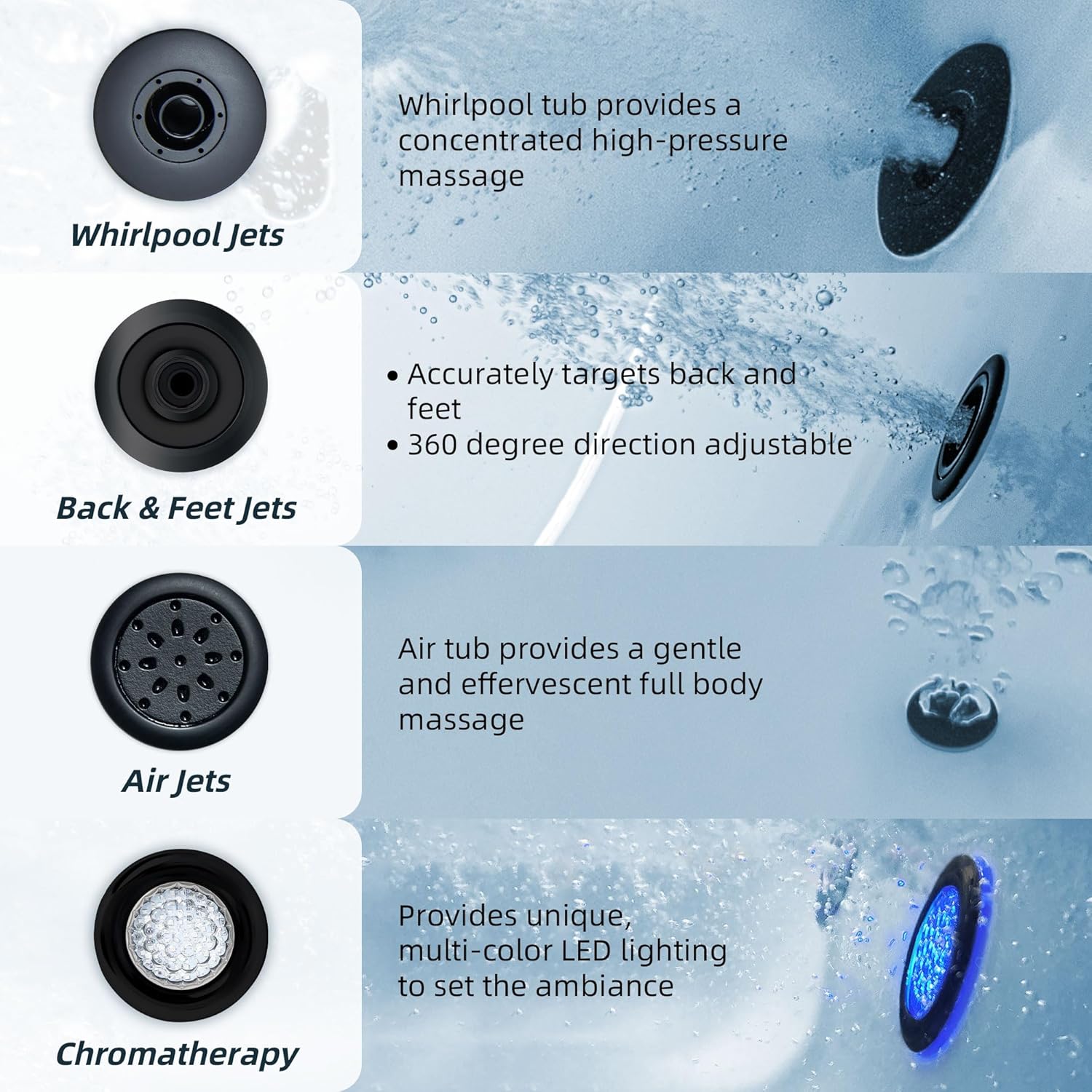 - ✅ [JETS QUANTITY]: 6 adjustable body massage jets and 10 whirlpool bubble bath jets for maximum bather comfort, The perfect mix of air and water delivers a powerful, yet comfortable hydro massage.